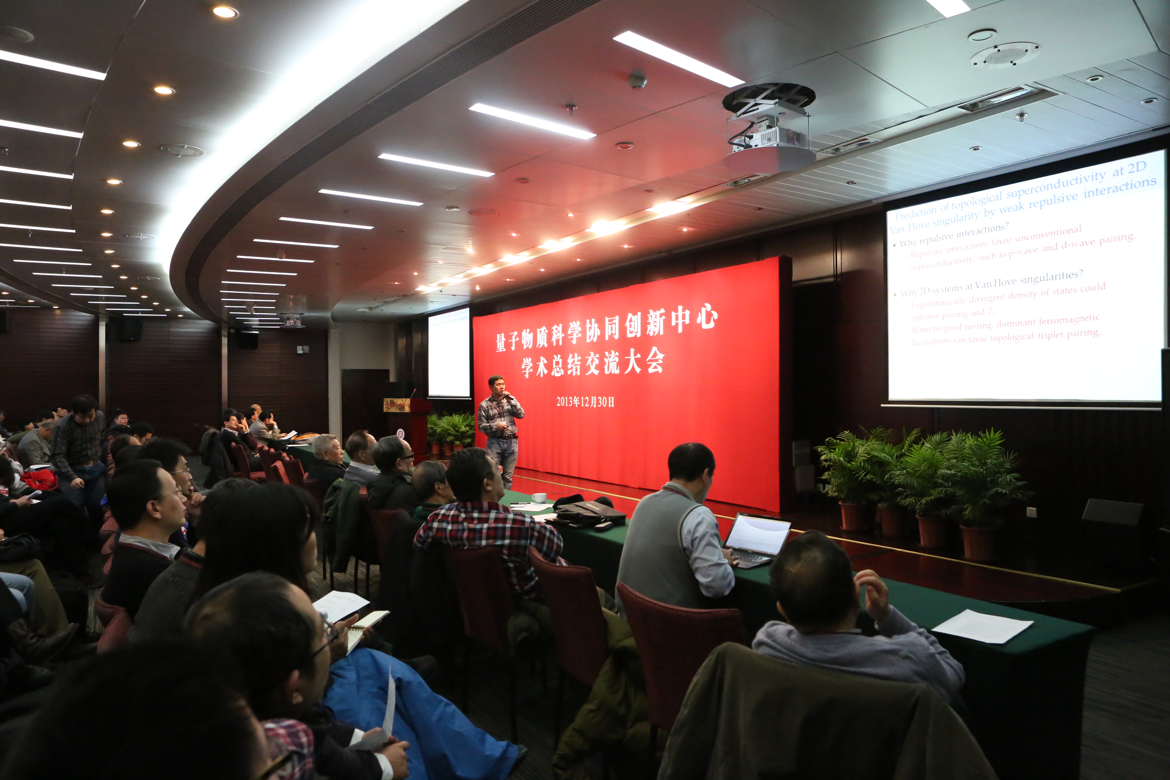 2013年12月30日,量子物质科学协同创新中心在欧冠官方网站中关新园科学报告厅举行了2013年学术总结交流大会。中心下属6个创新研究平台(高温超导研究、低维量子结构与物性研究、新型量子及拓扑态研究、多体量子系统及相互作用研究、介观光学及冷原子研究、实验技术与仪器研发)的研究成员约150人参加了本次学术总结交流大会,每个平台都推荐了3位中青年研究骨干介绍了相关研究领域的前沿工作。会后,中国科学院物理研究所的于渌院士、中心联合主任谢心澄教授、薛其坤院士,以及平台主任丁洪教授分别发言,激励中心成员,特别对中青年研究人员寄予厚望,并展望中心的未来发展。