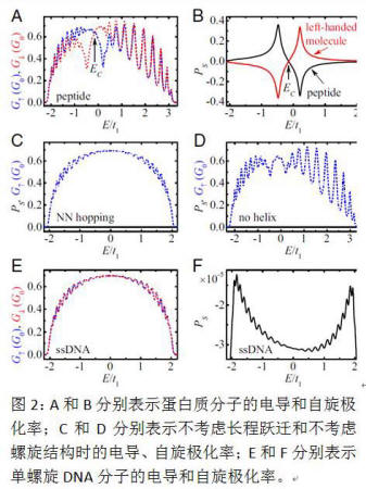 最近,孙庆丰教授和郭爱敏博士在分子自旋电子学领域又取得了重要进展。他们考虑将单螺旋分子接在两个非磁性电极之间,提出一个模型哈密顿量(包括长程跃迁项)研究了该系统的自旋输运性质。他们发现alpha-型单螺旋蛋白质是很好的电子自旋过滤器,电子自旋极化率达到36.2%,而单螺旋DNA不能有效地过滤电子自旋。这项研究成果解释了美国科学院院刊PNAS上的实验结果[PNAS 110, 14872 (2013)]以及Science上的实验结果[Science 331, 894 (2011)]。他们的研究成果表明除了双螺旋DNA分子外,有长程跃迁的单链螺旋分子也可以成为电子自旋过滤器。相比于最近邻跃迁,当长程跃迁比较明显时,单链螺旋分子能辨别电子自旋;当长程跃迁非常弱时,单链螺旋分子不能有效地过滤电子自旋。这项工作阐明了单链螺旋分子能够成为电子自旋过滤器的物理机制,能激起人们从实验和理论两个方面去研究各种螺旋有机分子的自旋和电荷输运性质,为将来设计螺旋分子自旋器件奠定了理论基础。