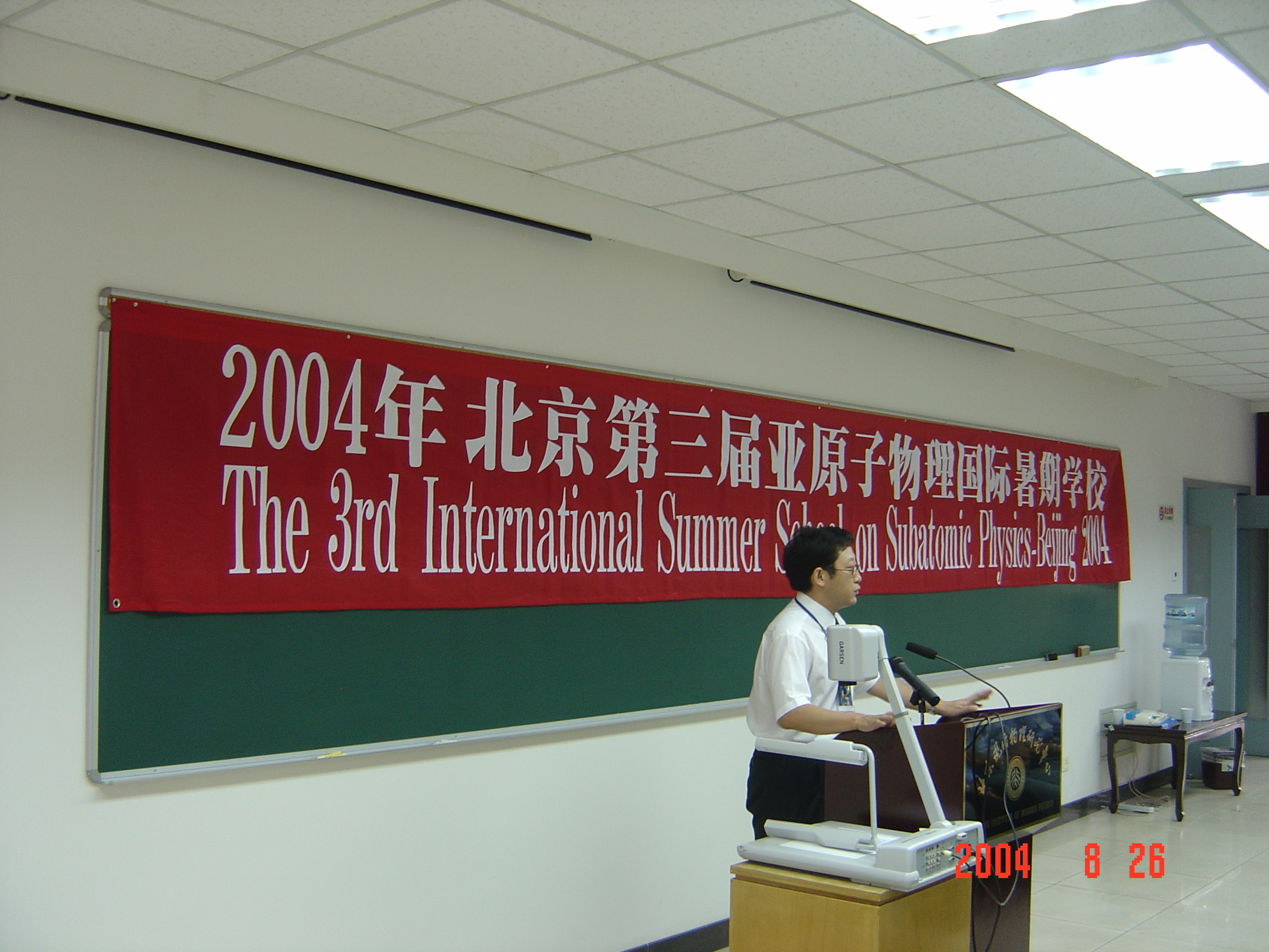 北京亚原子物理国际暑期学校第三期“核物理前沿讲座:不稳定核、超核、夸克胶子等离子体与核天体物理”于2004年8月26日在北京现代物理中心开幕。本届暑期学校共邀请了十四位国际著名学者授课。共有九十多位学者和学生将参加为期五天的暑期学校的学习。