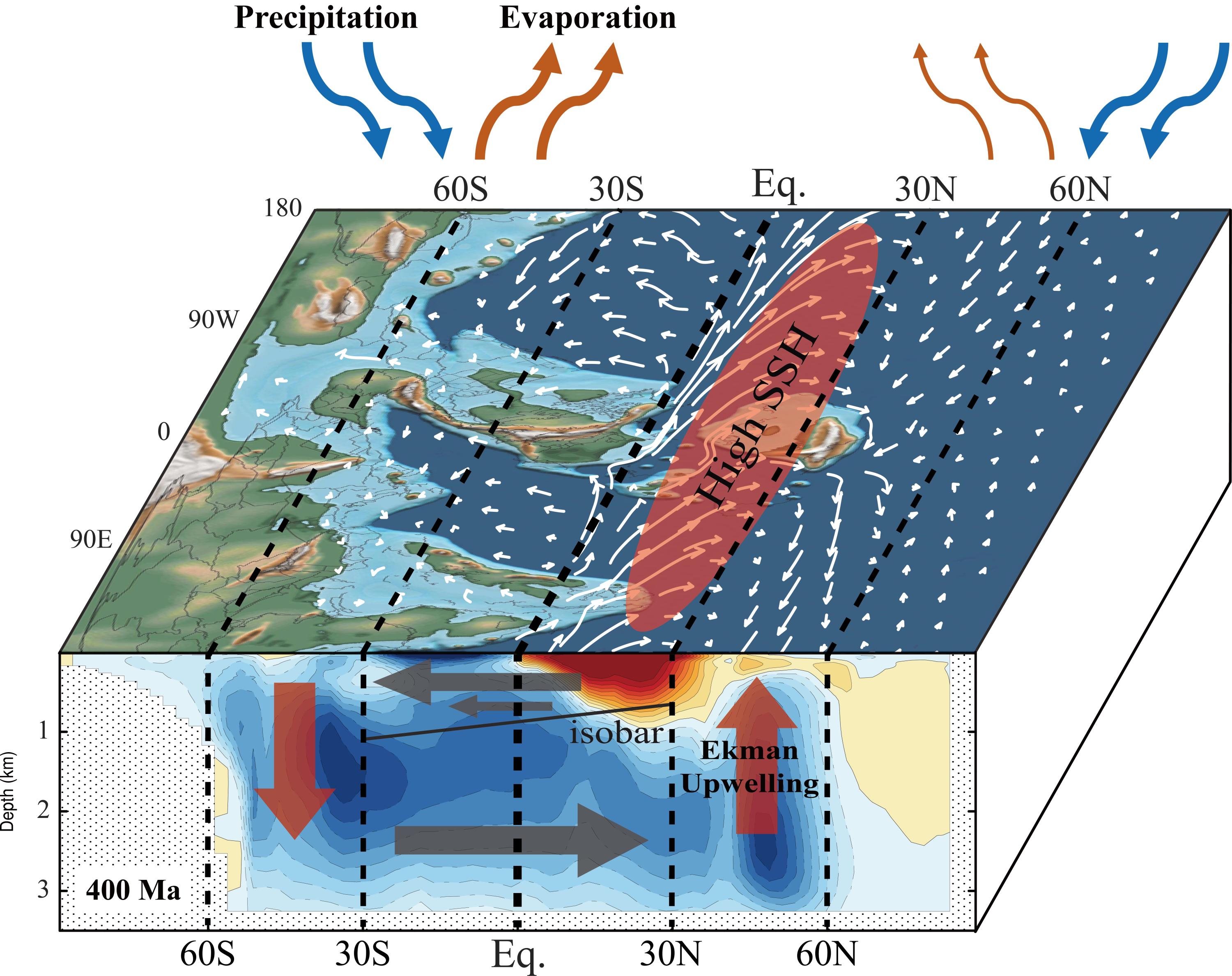 欧冠官方网站大气与海洋科学系胡永云教授团队对古生代(5.4-2.5亿年前)全球海洋经向翻转环流的演变及其主控因子进行了系统数值模拟研究,成果最近发表在《科学进展》(Science Advances)。