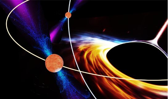 银心黑洞与两颗脉冲星的示意图(欧冠官方网站 / 胡泽昕 & 邵立晶;背景图:ESO & NASA)