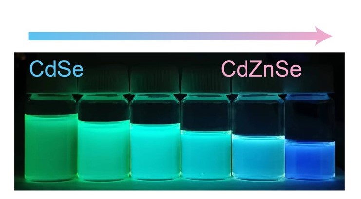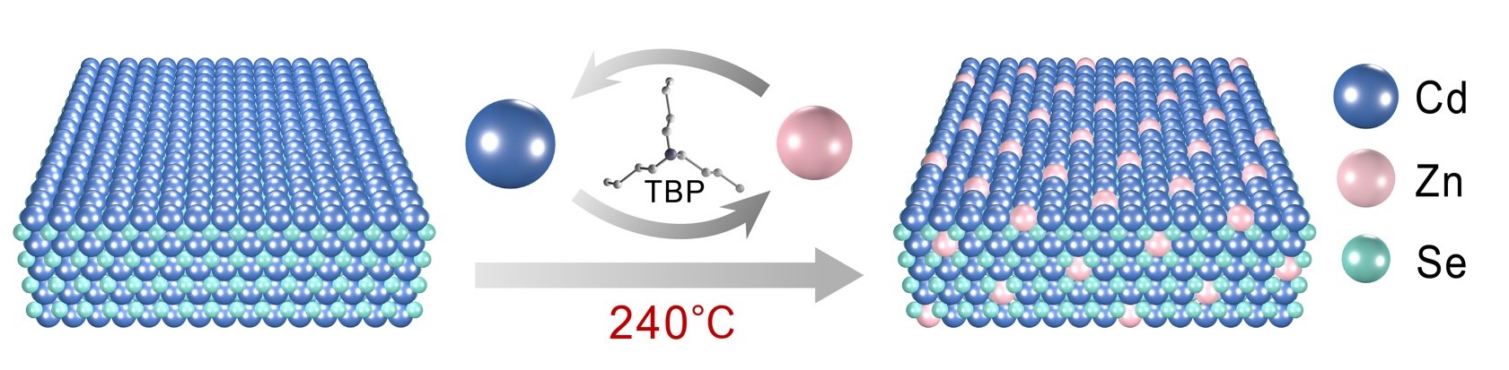 胶体量子阱(CQWs)独特的各向异性特性使其在纳米晶基器件中具有很高的应用前景。然而,基于CQWs的绿色和蓝色发光二极管的有限性能阻碍了它们的实际应用。在本研究中,首次通过直接阳离子交换实现了具有特定尺寸、形状和晶体结构的合金硒锌镉CQWs。这种方法有效使得纳米晶的发光波长蓝移,并能维持量子阱的片状形貌,为后续的溶液外延生长提供种子。