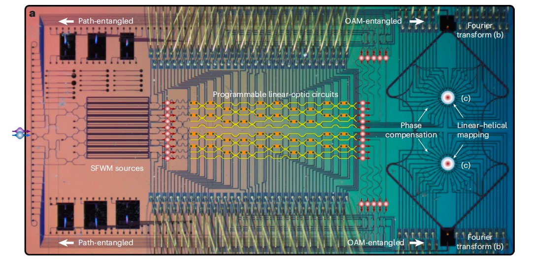 值得一提的是,迄今为止,在硅基集成光量子芯片体系中,研究人员已成功实现了完备的不同自由度量子纠缠光源库,包括路径纠缠、偏振纠缠、时间纠缠、频率纠缠、空间模式纠缠以及轨道角动量(OAM)模式纠缠。本项工作填补了片上OAM纠缠的空白,进一步完善了集成量子纠缠光源库的体系,也为未来多自由度光量子信息处理芯片的研究提供了全面的技术支撑。
