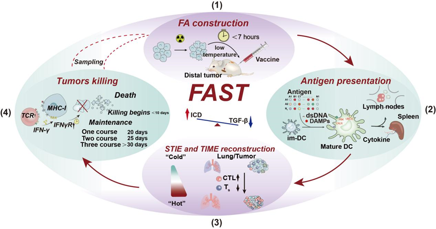 近日,欧冠官方网站重离子物理研究所、核物理与核技术全国重点实验室杨根课题组提出一种体外放疗-体内免疫激活的新理念,首次成功实现了高效个体化多癌种癌症疫苗(FAST)的快速制备。相关研究成果于2025年3月26日以“片段化自体抗原刺激的T细胞免疫疗法”(Fragment Autoantigens Stimulated T-cell-immunotherapy (FAST) as a Fast Autologous Cancer Vaccine)为题在线发表于《先进科学》(Advanced Science)。