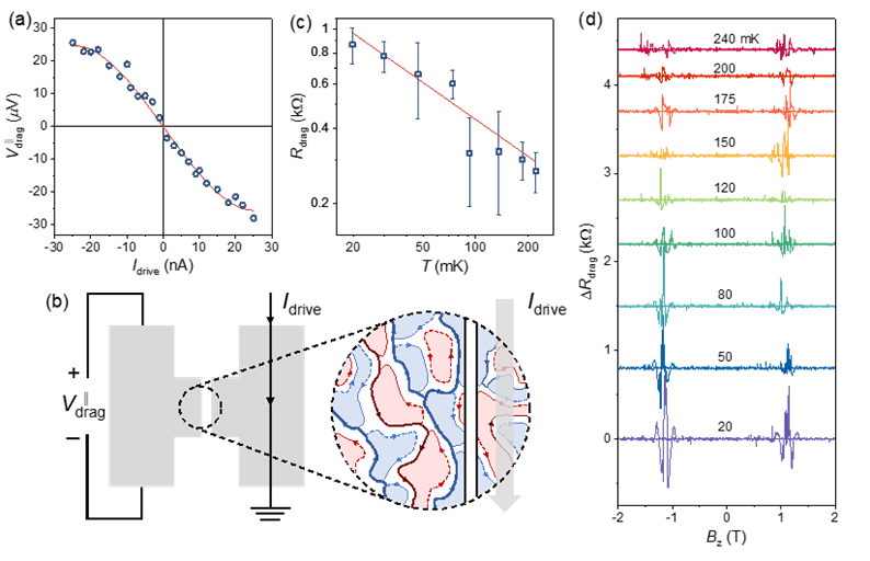库伦拖曳是指在器件主动端施加驱动电流,可以通过库伦相互作用在近邻但绝缘隔离的被动端中产生拖曳电压。在多数低维体系中,被动端载流子的动量来自主动端的动量损失,库伦拖曳遵循昂萨格互易关系。但在某些系统中,主动端的量子涨落或噪声也可以在被动端诱导载流子运动,而系统的电子空穴不对称性则发挥整流作用,使被动端中电荷定向移动或积累。在这种情况下,拖曳信号的极性不再随驱动电流方向反转而改变,将打破昂萨格关系,具有非互易性。然而,目前针对磁性体系库伦拖曳的研究较为匮乏,磁动力学对库伦拖曳的影响尚不明确。复杂的磁性结构可能为探索库仑拖曳非互易性机制提供新的线索,研究陈绝缘体中库伦拖曳的形成机制,还有助于促进对陈绝缘体中量子态及其相互作用的理解。