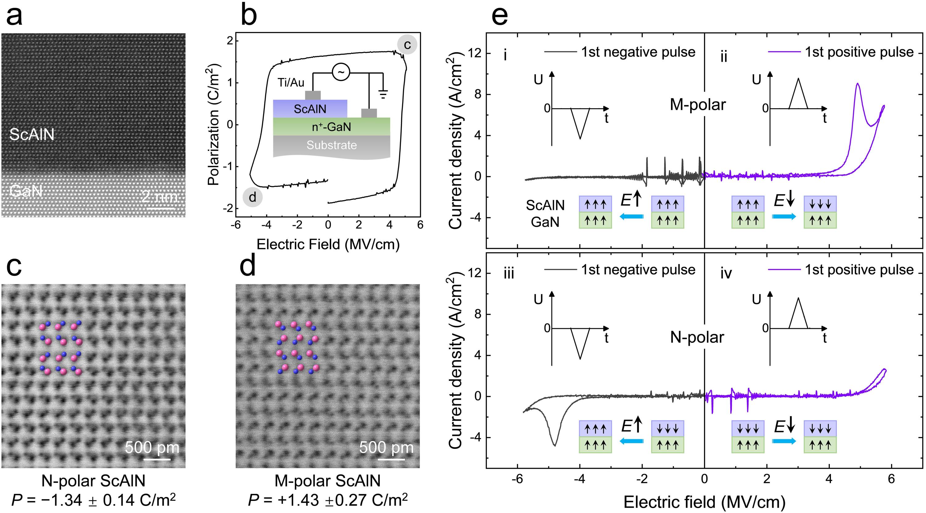 图2. 纤锌矿氮化物铁电半导体的宏观极化测量