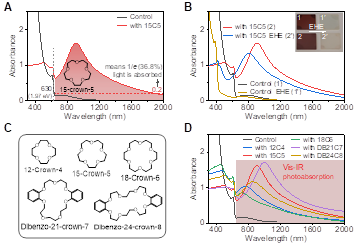 图1:超分子冠醚的引入策略实现钙钛矿的光谱拓展:从可见至红外的光吸收(光谱学)。