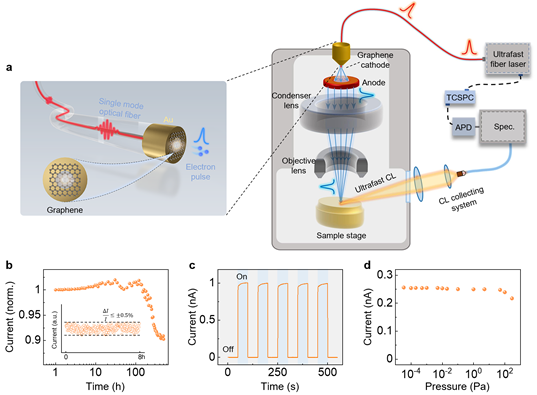 图1光纤集成石墨烯高稳定超快电子源及电镜集成