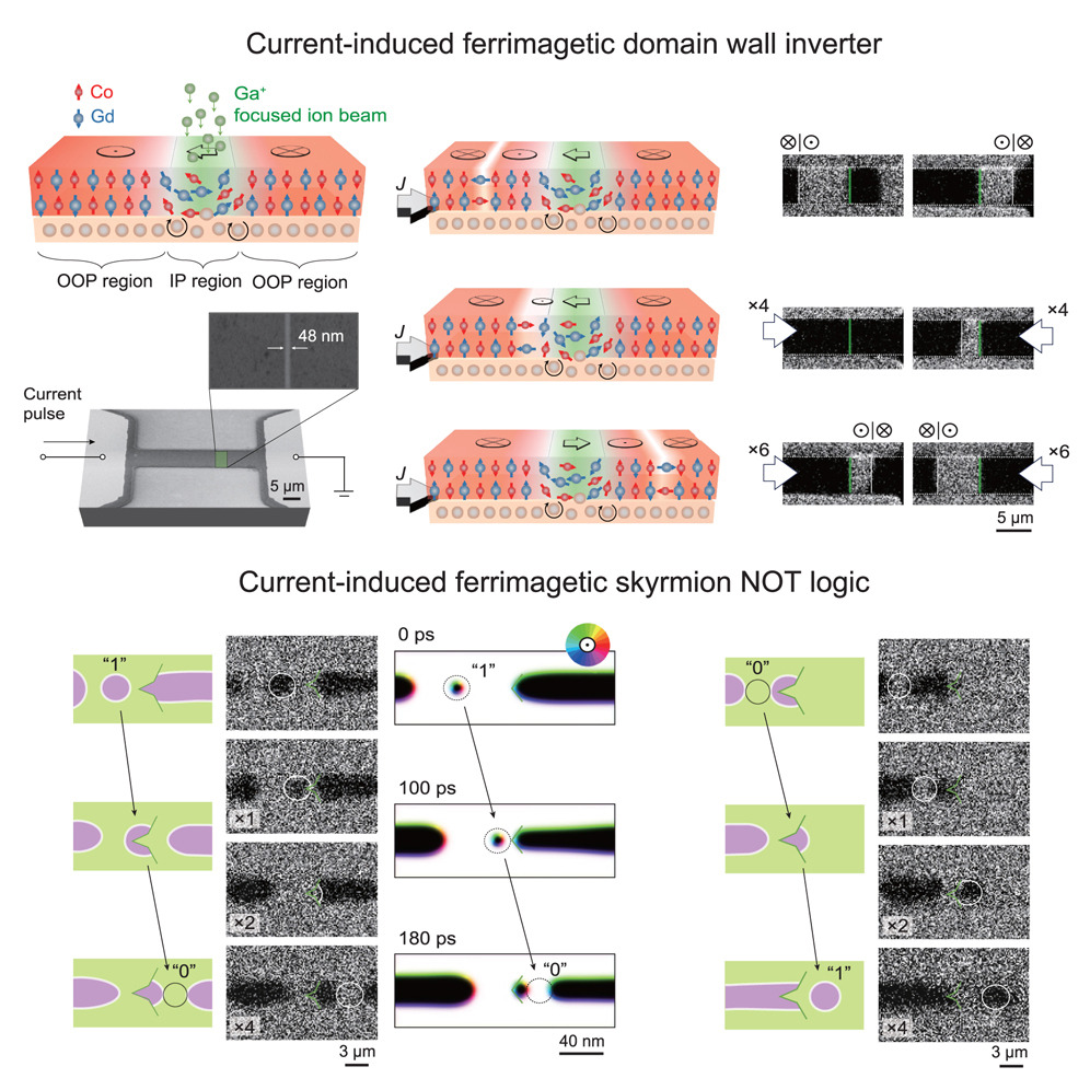 图2 亚铁磁体中超快可靠的畴壁和斯格明子逻辑器件的设计与实现