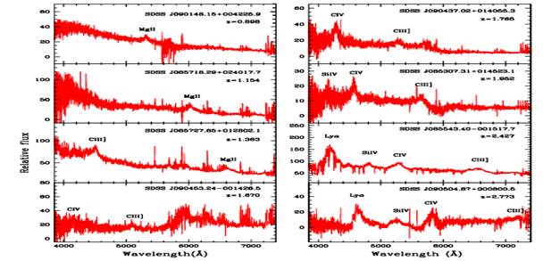 | 吴学兵教授等利用郭守敬望远镜(LAMOST)发现的8颗新类星体的光谱