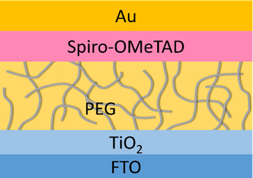 近期,由俞大鹏教授领导的欧冠官方网站“纳米结构与低维物理”研究团队在该领域取得新进展。该团队的赵清副教授等设计了一种钙钛矿电池的新结构,将长链吸湿性PEG分子作为聚合物骨架引入到钙钛矿材料吸光层中,长链PEG分子构成的三维网络使钙钛矿材料成膜质量显著提高,电池光电转化效率和重复性得到显著提高,最高效率可达16%。该种电池在100度温度下一步法即可完成,制备方法简单易行,易于推广。由于PEG分子的超强吸湿性,聚合物骨架钙钛矿电池在湿度环境下的稳定性得到显著提升:没有任何封装的电池器件在异常潮湿环境中(70%相对湿度)展现出超过300小时的稳定性。不仅如此,聚合物骨架钙钛矿电池展现出神奇的“自修复”功能:在钙钛矿材料和电池在被水解破坏后,1分钟内可迅速自修复回到原来的电池状态和电池效率。研究表明,由于PEG与钙钛矿材料中的甲胺离子具有很强的相互作用,使水解后的碘化铅与甲胺碘可原位再次生成钙钛矿材料,展现出电池材料和效率均可“自修复”的功能。这种新型聚合物骨架结构使钙钛矿电池对水破坏性和潮湿环境的耐受度大大增强,极大提高了电池在湿度环境下的稳定性,解决了钙钛矿电池害怕水汽和电池效率在潮湿环境下会迅速减退的应用难题,展出神奇的自修复功能,为今后钙钛矿电池商业化提供了一条新思路,具有重要的科学意义和应用价值。