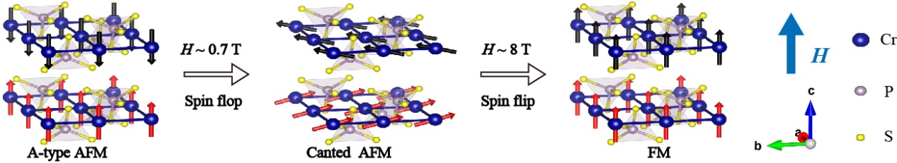 图2. CrPS4在c轴磁场下磁结构的演变