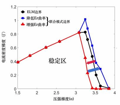 欧冠官方网站重离子物理研究所和核物理与核技术国家重点实验室郭志彬研究员在深入分析边缘区等离子体湍流性质的基础上,提出了一种研究等离子体边缘区激发模式的新手段—涡旋波耦合理论。在这一理论模型下,研究发现:1)当电流密度驱动和压强梯度驱动的双涡旋波实现锁相时,ELM将被激发,等离子体进入ELM-H模状态;2)当涡度梯度、电流密度和压强梯度驱动的三涡旋波同时实现锁相时,边界层的高频谐振荡(EHO: Edge Harmonic Oscillation)将被激发,从而使等离子体进入QH模状态。郭志彬课题组发现等离子体边缘区的径向电场曲率在选择涡旋波的锁相方式上起着关键作用(图1):1)降低边界电场曲率,三涡旋波联合模式的不稳定性边界(蓝线)会处在ELM边界(黑色)右侧,此时系统将处于ELM-H模状态;2)增加边界电场曲率,直到三涡旋波联合模式的不稳定性边界(红色)移至ELM边界(黑色)左侧,此时系统将处于QH模状态。这一理论进一步发展了郭志彬等提出的滑相输运理论(https://journals.aps.org/prl/abstract/10.1103/PhysRevLett.114.145002),对未来聚变堆先进运行模式物理设计和实验研究具有重要的指导意义。