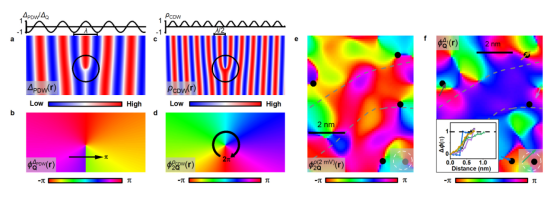 确认了单层Fe(Te,Se)薄膜畴界处存在配对密度波后,课题组进一步在畴界处得到了周期为1.8aFe(配对密度波周期的一半)的电荷密度波存在的证据。通过对配对密度波(周期为3.6aFe)和电荷密度波(周期为1.8aFe)的空间相位分布进行深入分析,确认了配对密度波空间相位分布中的π-相位变化位置(图3f中箭头所示)与电荷密度波相位分布中的涡旋位置(图3e和3f的黑点所示)存在明显的实空间对应关系。这一对应关系与理论预测的本征配对密度波序(图3a-b)及其诱导出的二阶电荷密度波序(图3c-d)特征一致,证实了所观测到的是本征配对密度波。