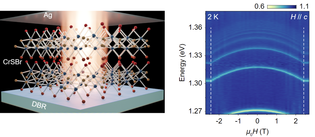 左图:CrSBr与光学微腔耦合结构;右图:激子极化