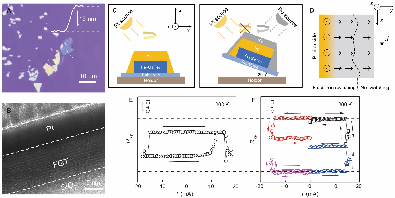 图1范德华磁体Fe3GaTe2/重金属异质结与电流驱动无场磁化翻转