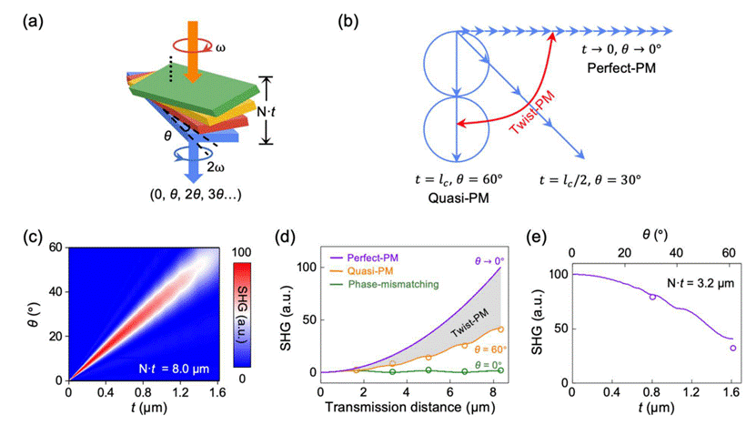 近日,欧冠官方网站量子材料科学中心王恩哥院士、凝聚态物理与材料物理研究所刘开辉教授和洪浩特聘副研究员与合作者在非线性光学晶体领域取得重大突破。研究团队首创了全新相位匹配概念——界面转角相位匹配理论,并制备了一种全新类型光学晶体——转角菱方氮化硼光学晶体,开辟了光学晶体领域新的设计理论和材料体系。2023年12月4日,相关研究成果以“二维材料光学晶体转角相位匹配”(Twist-phase-matching in two-dimensional materials)为题在线发表于 《物理评论快报》(Physical Review Letters)杂志上。