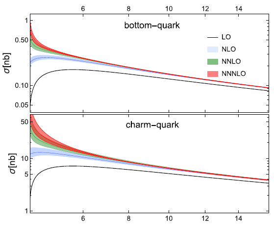 正反电子湮灭的总截面分为正反电子湮灭产生轻夸克的截面和产生正反重夸克的截面。前者的理论计算相对简单,十多年前已经有了四阶微扰QCD计算结果,理论误差得到了很好的控制。重夸克质量标度的存在导致后者的理论计算困难度大幅增长,理论精度只停留在二阶微扰论的结果。过去十五年中,人们对正反电子湮灭产生正反重夸克的截面的三阶微扰论贡献做了诸多努力,虽取得了一定的进展但始终未能彻底解决。