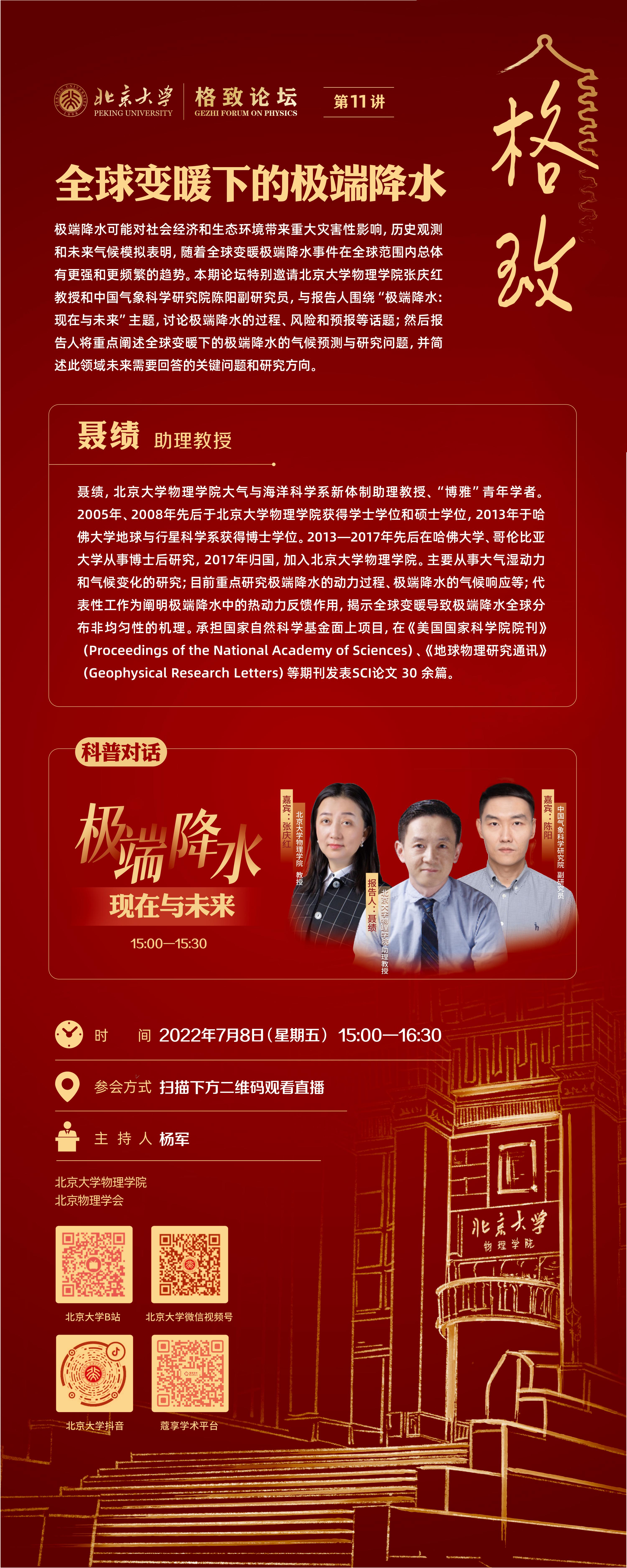 极端降水可能对社会经济和生态环境带来重大灾害性影响,历史观测和未来气候模拟表明,随着全球变暖极端降水事件在全球范围内总体有更强和更频繁的趋势。本期论坛特别邀请欧冠官方网站张庆红教授和中国气象科学研究院陈阳副研究员,与报告人围绕“极端降水:现在与未来”主题,讨论极端降水的过程、预报和风险等话题;然后报告人将重点阐述全球变暖下极端降水的气候预测与研究问题,并探讨此领域未来的一些关键问题和方向。