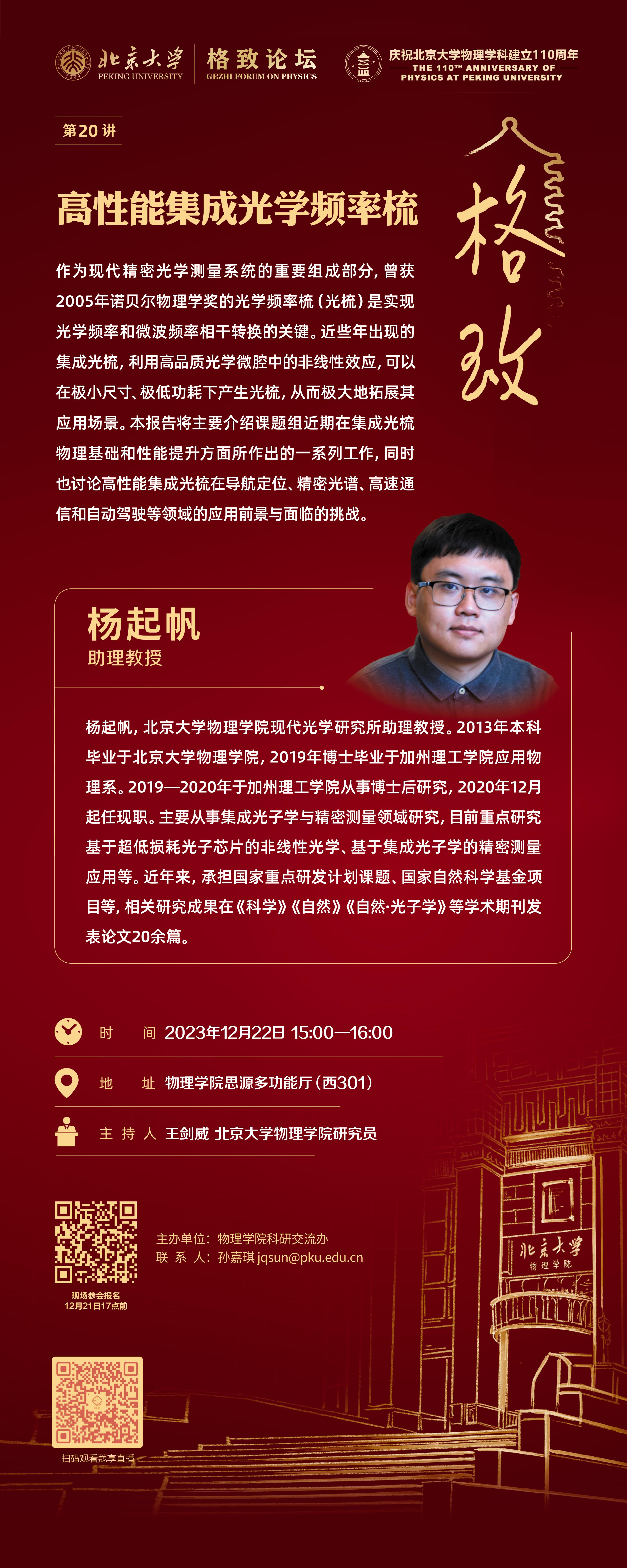欧冠官方网站格致论坛是欧冠官方网站发起的面向青年教学科研人员学术交流活动。“格致”体现两重涵义:一是,欧冠官方网站物理学科源自京师大学堂格致科;二是,“致知在格物”出自《礼记·大学》。自2010年4月启动以来,论坛围绕学科领域前沿,面向国家重大需求,针对基础科学问题,开展了十余场学术研讨,分享最新研究成果,促进学科交叉融合,培育新兴方向增长点,展现了北大物理人学术无畏、攀登无限的新风貌。2021年5月,于欧冠官方网站成立二十周年之际重启,并增设在线参与通道。