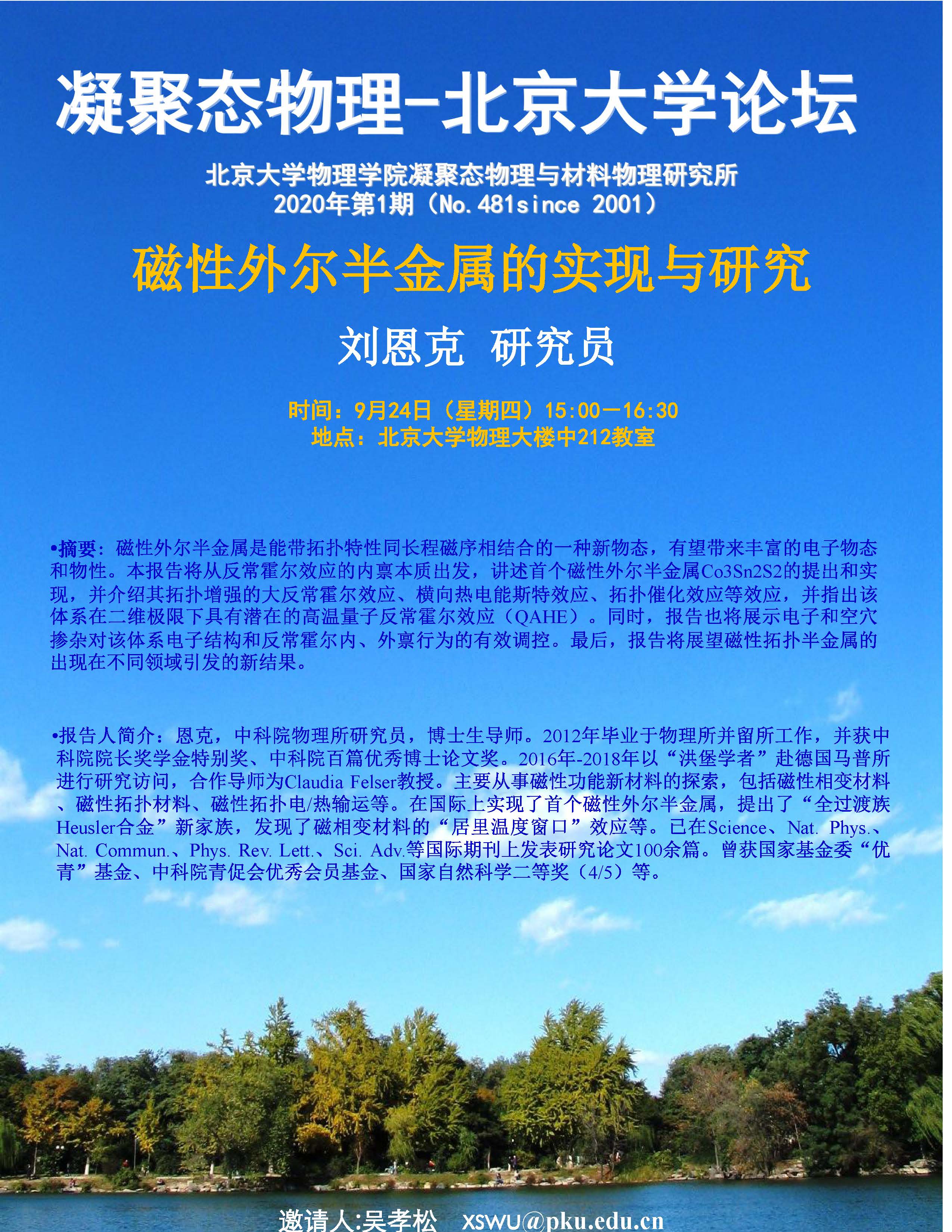 【凝聚态物理论坛】2020年第一期:磁性外尔半金属的实现与研究