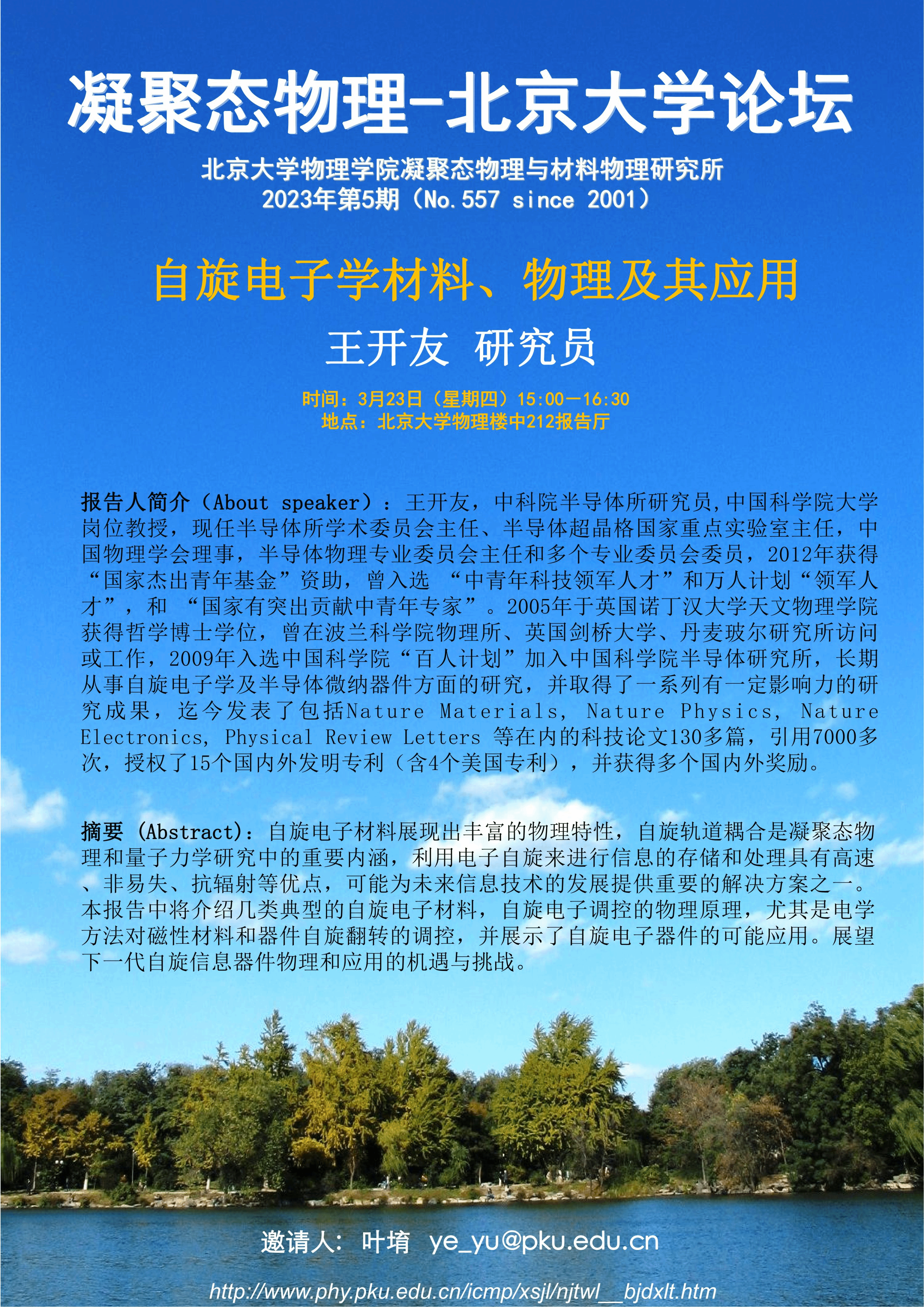 自旋电子材料展现出丰富的物理特性,自旋轨道耦合是凝聚态物理和量子力学研究中的重要内涵,利用电子自旋来进行信息的存储和处理具有高速、非易失、抗辐射等优点,可能为未来信息技术的发展提供重要的解决方案之一。本报告中将介绍几类典型的自旋电子材料,自旋电子调控的物理原理,尤其是电学方法对磁性材料和器件自旋翻转的调控,并展示了自旋电子器件的可能应用。展望下一代自旋信息器件物理和应用的机遇与挑战。