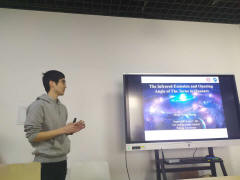 庄明阳师兄是天体物理的博士生,主要从事活动星系核(AGN)宿主星系的恒星形成率和活动星系核中心尘埃环(torus)的研究。主要从红外波段的发射线和连续谱来研究活动星系核及其宿主星系的性质。在天体物理学权威杂志Astrophysical Journal发表三篇文章(两篇一作,一篇合作)。获得校“三好学生标兵”在内的多项荣誉与奖励。在参加的国内外会议中做过三次口头报告和多次海报展示。今天庄明阳师兄以“类星体中尘埃环的张角和红外辐射”为题带领大家认识了我们美丽的星空,领会了宇宙的奥妙。同学们对黑洞、核聚变、暗物质、地外生命等的研究表现出了极大的兴趣,大家进行了很愉快的交流。