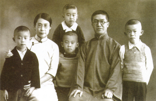 1937年,赵迺抟先生、骆涵素女士与孩子们(前排右三为赵凯华先生)合影