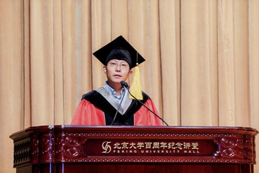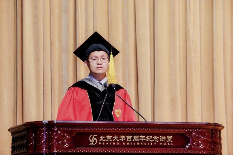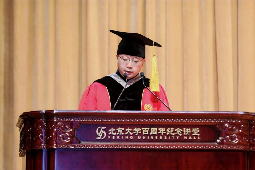 教师代表王一男勉励毕业生们保持北大物理人的特色——格物致知、实事求是,不断学习,打破学科壁垒,修炼待人接物的能力,成为更全面的人才。