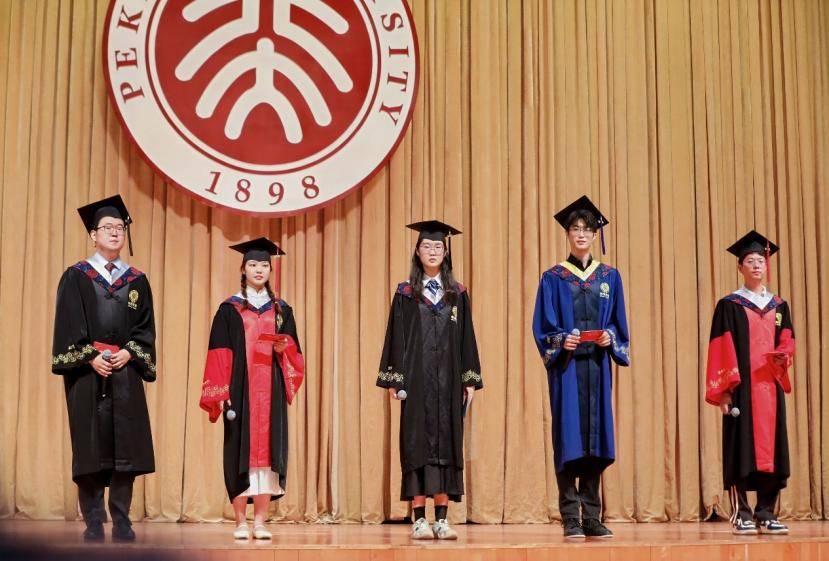 典礼开始前,现场播放了精心制作的暖场视频,回顾了毕业生们在北大的求学时光,从入学到毕业的点滴瞬间,唤起了同学们的青春回忆。舞蹈《BIRDS OF A FEATHER》、歌曲《光亮》《入海》等表演,尽显北大学子活力才艺。