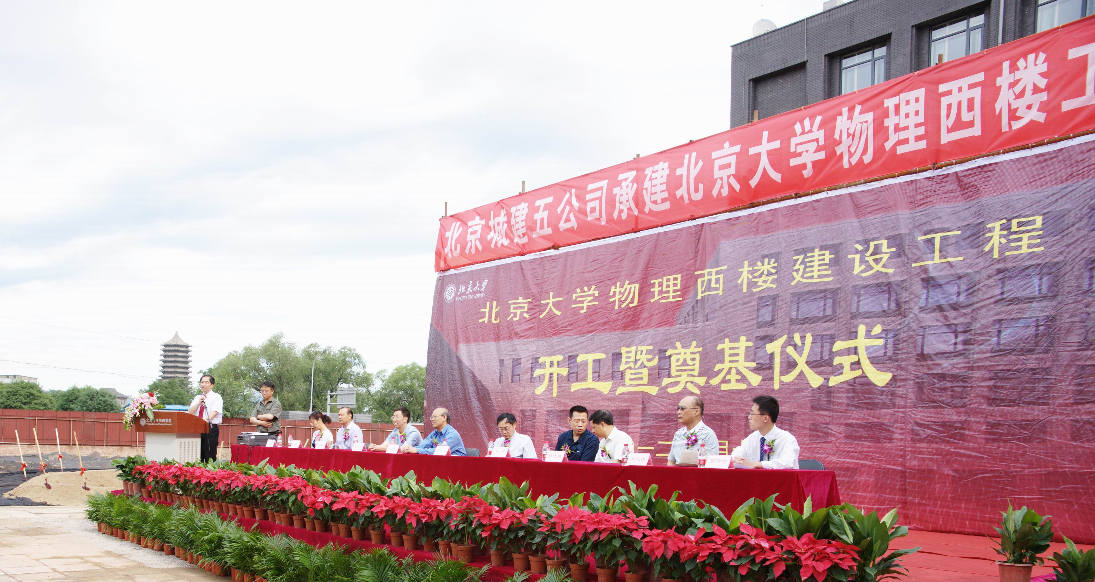 2012年6月10日上午8时,欧冠官方网站物理西楼建设工程开工暨奠基仪式在欧冠官方网站举行。欧冠官方网站副校长王恩哥、欧冠官方网站院长谢心澄、院党委书记陈晓林、基建工程部部长莫元彬、副部长李钟、北京城建五建设工程有限公司总经理石赛科、院规划委员会委员、师生代表、离退休教师代表以及西楼项目部相关人员一百余人参加了奠基仪式,活动由欧冠官方网站副院长龚旗煌教授主持。