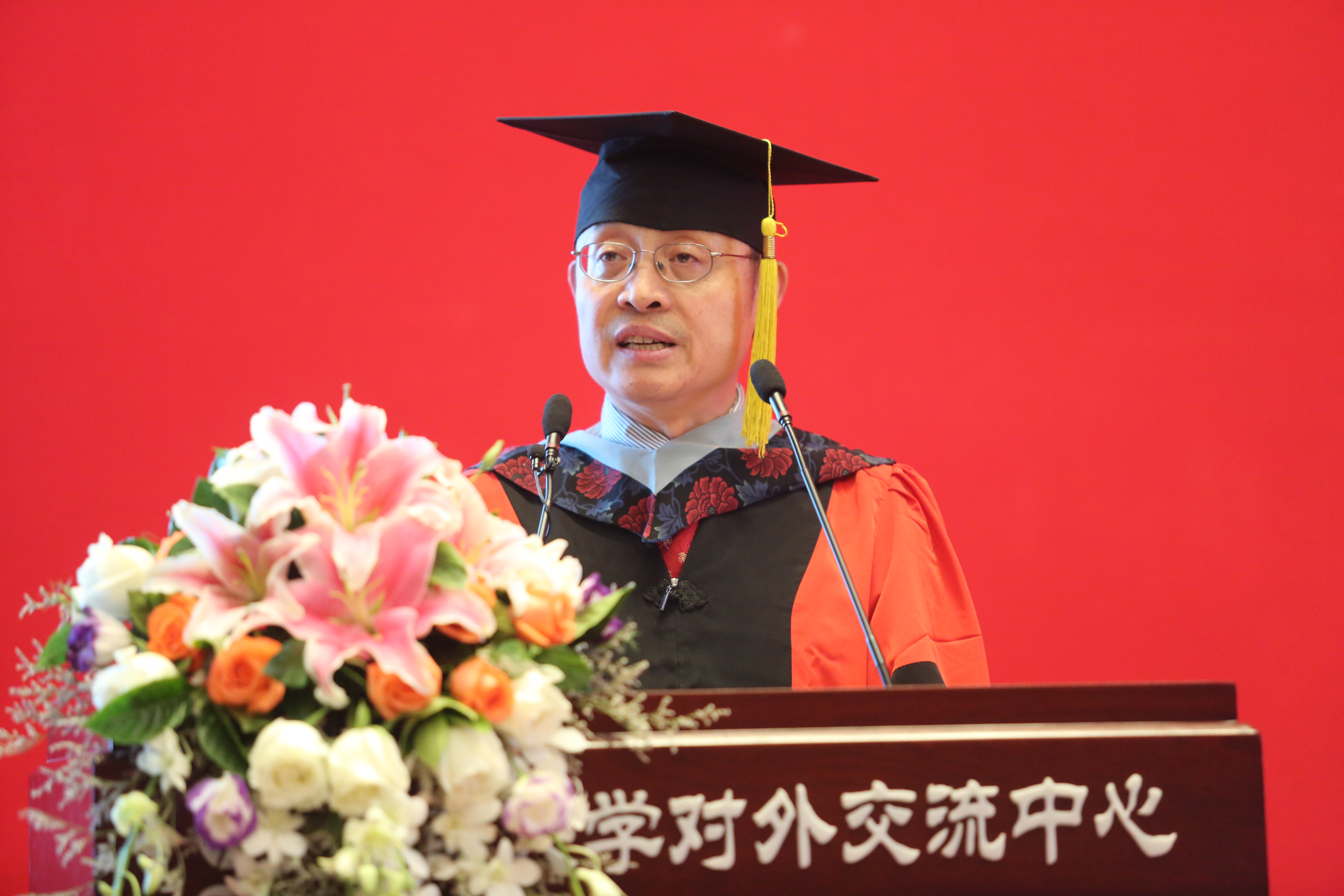 今天是个开心的日子。对于很多同学来说,终于可以松口气了,不再有大大小小的考试啦。但是,社会是一个更大的学堂,学习是终生的,只是不再有一套制定的必修课,所有都是选修。无论今后是在学术界,政府部门,企业,还是创业,你们在欧冠官方网站所学、所经历的,都将使你们受益终身。另一方面,北大和欧冠官方网站明天的辉煌与你们密切相关,在很大程度上取决于你们的将来。希望你们未来在不同的岗位上,踏实、勤奋,认认真真做人做事,知行合一,做到善其身、后而兼济天下,“勿以善小而不为,勿以恶小而为之”。