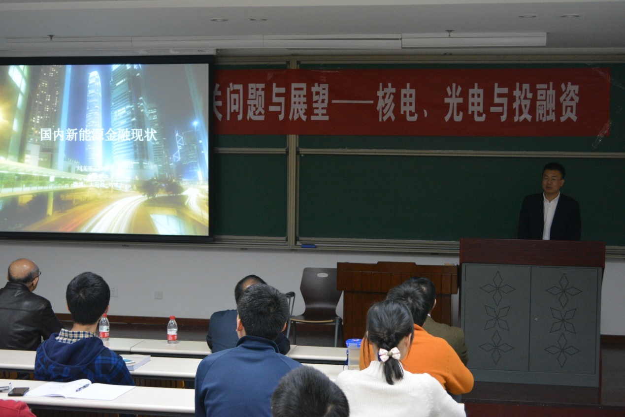刘文平学长在给大家讲解国内新能源金融现状 |