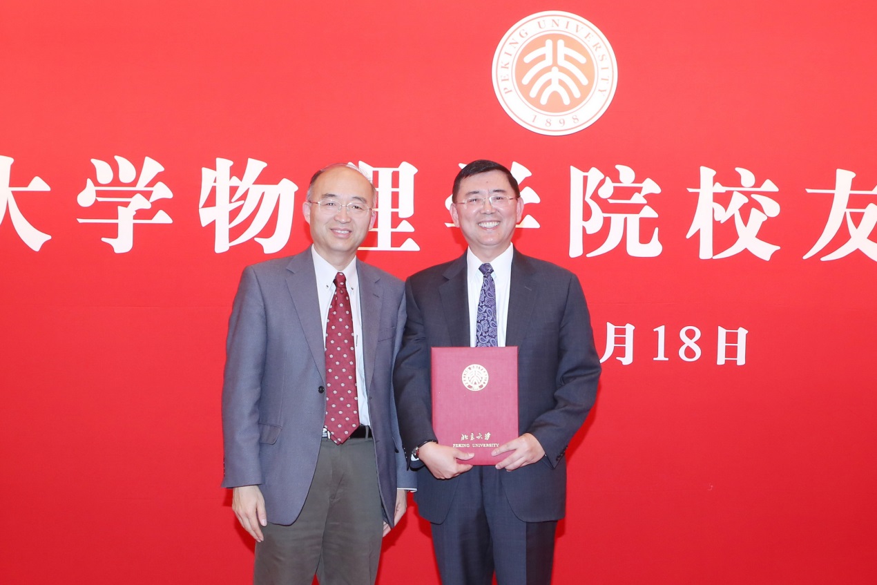 捐赠校友代表79级校友林峰颁发了感谢状,向“北大物理新楼报告厅座椅认捐基金”认捐校友代表葛惟昆等三位校友赠送了纪念礼品。