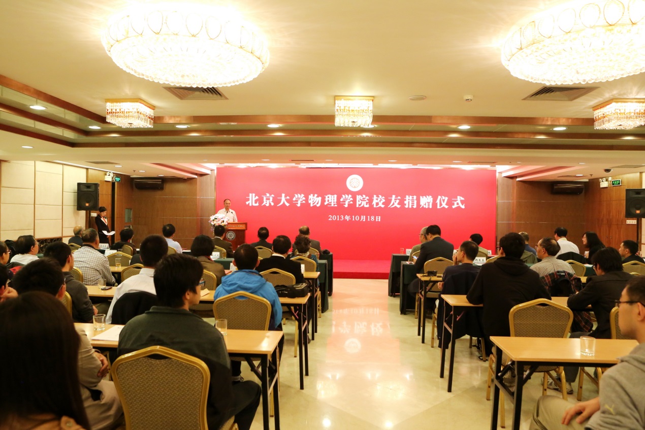 2013年10月18日下午,欧冠官方网站校友捐赠仪式在欧冠官方网站英杰交流中心新闻发布厅举行。欧冠官方网站常务副校长吴志攀教授、欧冠官方网站院长谢心澄教授、欧冠官方网站副院长龚旗煌教授,欧冠官方网站党委副书记董晓华副研究员,欧冠官方网站77级校友夏廷康等二十多位校友代表出席了捐赠仪式。此外到场的还有欧冠官方网站的教师代表和学生代表。捐赠仪式由欧冠官方网站教育基金会耿姝主持。
