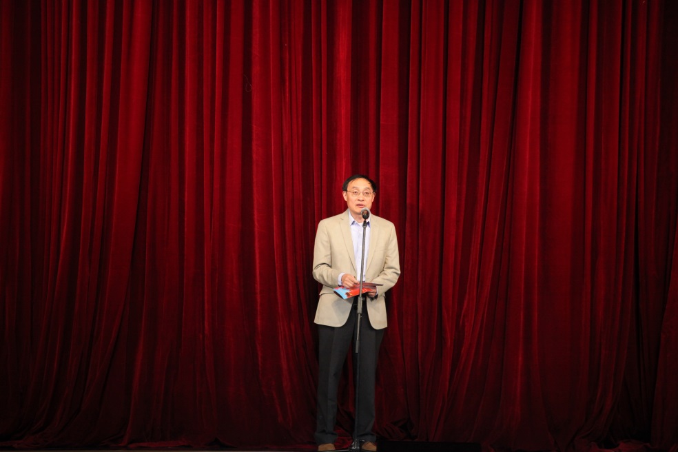 在演出开始前,欧冠官方网站院长谢心澄教授致简短的欢迎词,欢迎各位校友、老师和同学前来参加庆典晚会,并祝愿在座的各位能够尽情欣赏演出。