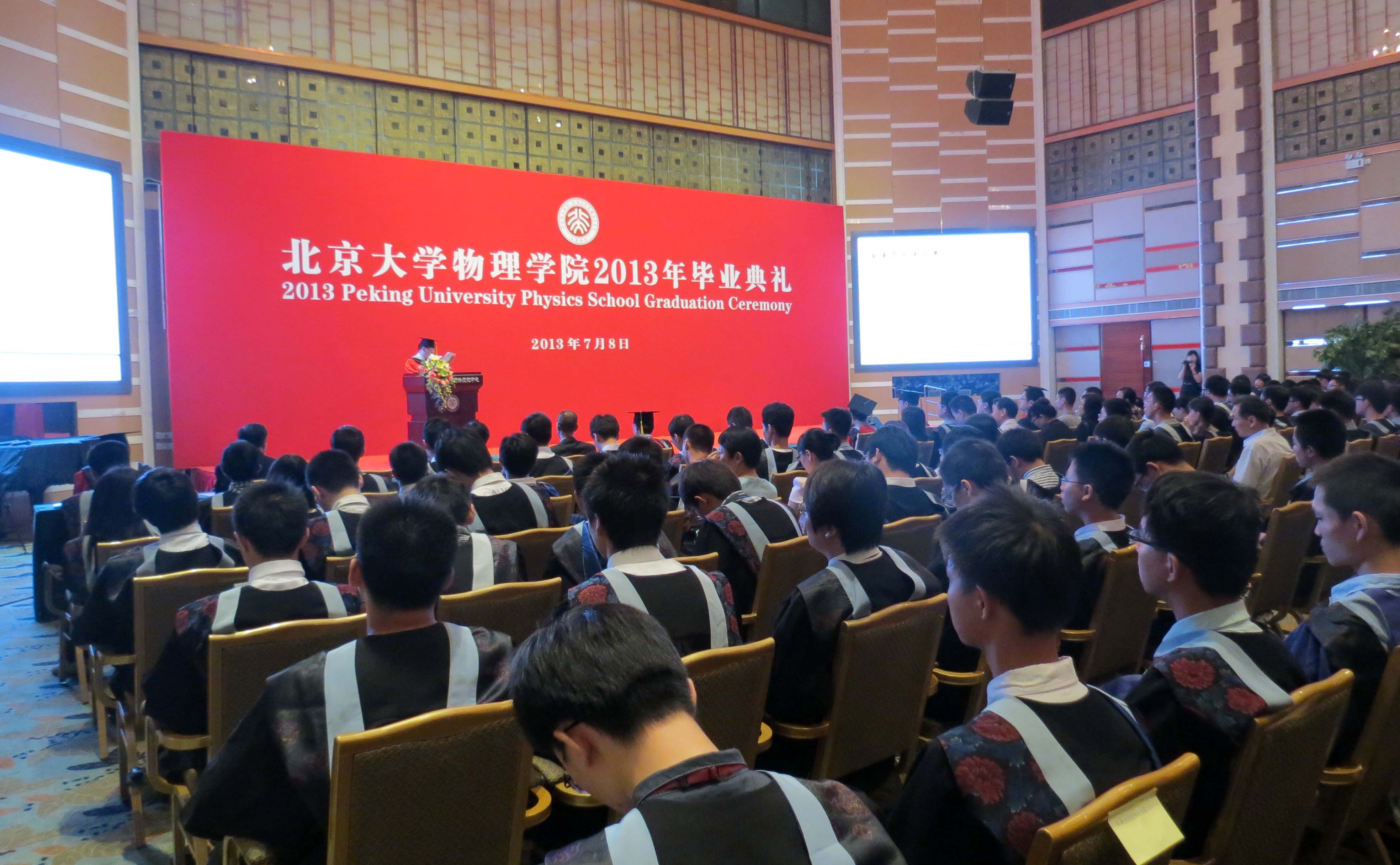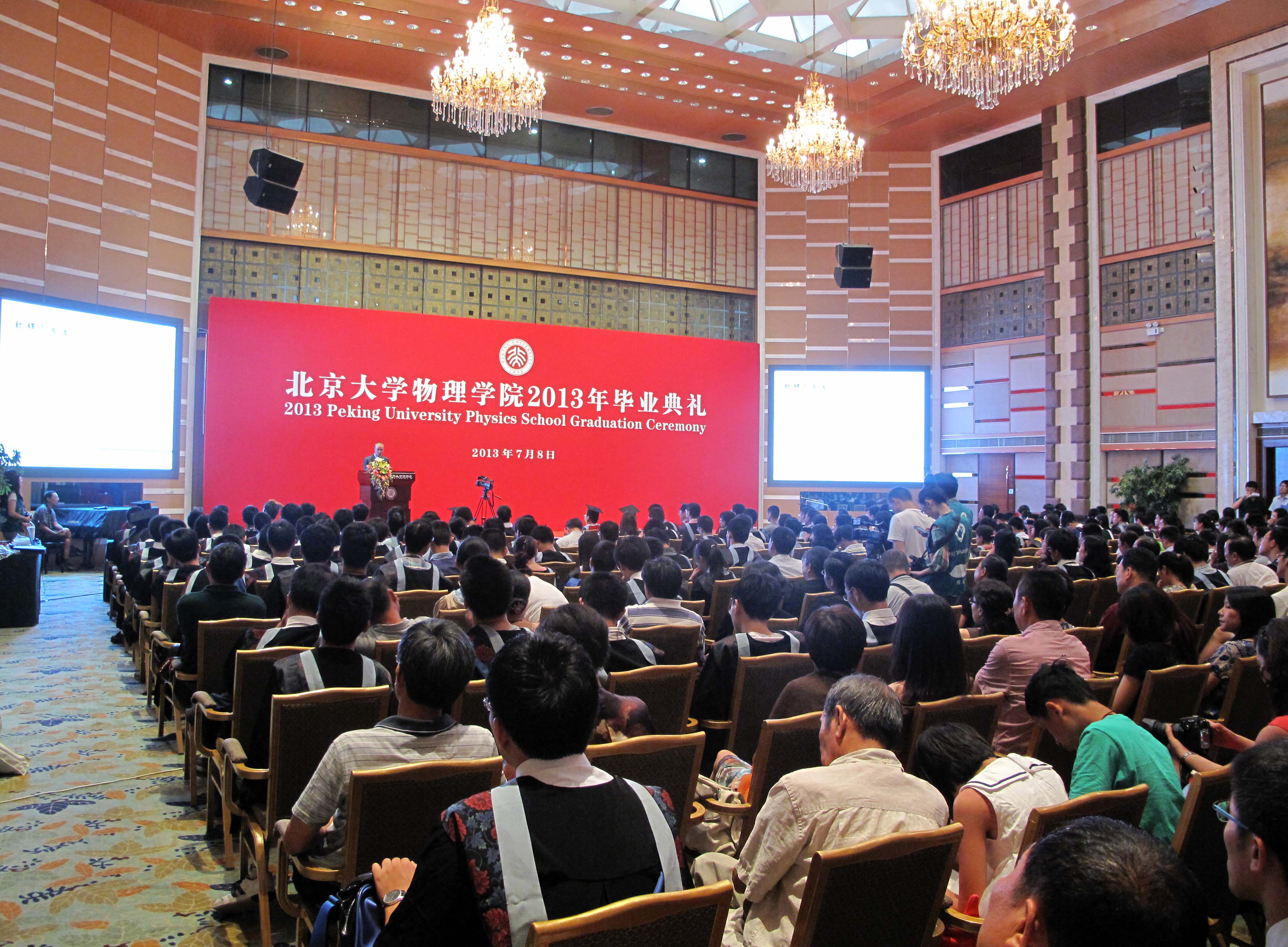 其后,本科毕业生代表龙凤、硕士毕业生代表赵子龙、博士毕业生代表王伟分别从各自的成长经历、就业去向和人生理想出发,畅谈了自己在北大物院这些年的感受与收获。