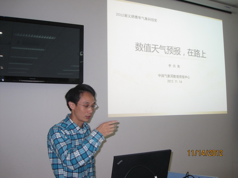 2012年谢义炳青年气象科技奖颁奖仪式于11月15日下午举行。谢义炳先生的女儿北京市气象局谢庄研究员,欧冠官方网站大气与海洋科学系主任胡永云教授,欧冠官方网站大气与海洋科学系陶祖钰教授,来自各气象类院校和科研单位的获奖人员以及大气与海洋科学系的部分师生参加了颁奖仪式。