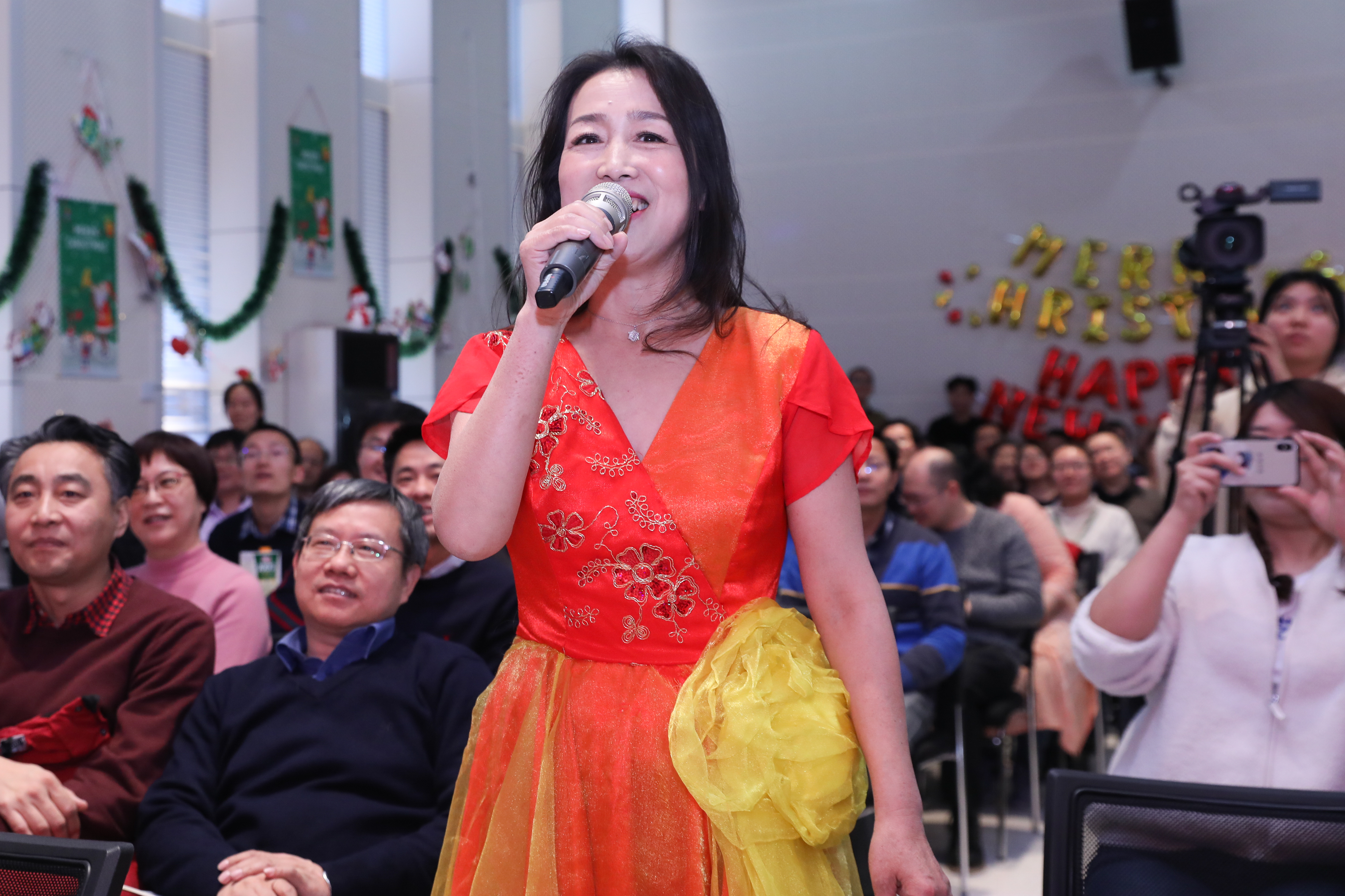 联欢活动由院学工办缑清睿、曾炯两位老师主持。此次联欢活动汇聚了众多精彩纷呈的文艺节目,展现了学院教职员工朝气蓬勃、自信昂扬的精神面貌,博得了在座老师们的阵阵掌声。学院办公会老师们带来合唱《战友之歌》,量子材料科学中心带来二重唱《贝加尔湖畔》和合唱《绒花》,电子光学与电子显微镜实验室带来合唱《真心英雄》,凝聚态所带来歌伴舞《我和我的祖国》,天文系和科维理所带来二胡独奏《赛马》、印地语清唱歌曲《恒河祈祷歌》和女子三人爵士舞“Sweet but psycho”,大气与海洋科学系带来二重唱‘それが大事’和京剧《三家店》选段,现代光学所带来男声独唱《鸿雁》,重离子所和技物系带来合唱《相亲相爱一家人》,普物实验教学中心带来男声独唱《小雨中的回忆》,高能物理研究中心带来武术表演《八卦昆仑扇》,行政老师们带来了充满活力的开场舞蹈《炫舞青春》和劲歌热舞《北方的狼》和《野狼disco》,学院参加国庆方阵的全体老师带来合唱《同心共筑中国梦》,充分体现了各系所老师们的热情参与和多才多艺。联欢部分还设置了游戏和抽奖环节,活动内容丰富,全场一片欢声笑语。活动的最后是“为生肖老师送祝福”的特别环节,现场所有属鼠的老师共同切分蛋糕,迎接新一年的到来。