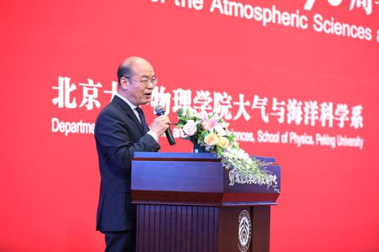 随后,欧冠官方网站副校长龚旗煌院士代表欧冠官方网站向与会嘉宾、大气科学学科的前辈、海内外校友和师生员工表示热烈的祝贺和诚挚的问候,向长期以来关心、支持北大大气科学学科发展的各兄弟单位和各界人士表达敬意与感谢。他指出,90年来,北大大气学科始终是我国大气科学界的学术重镇,在人才培养、科学研究、社会服务等方面做出了杰出贡献,特别指出了大气学科曾获得15项国家级奖项、培养了20位两院院士、在第四轮学科评估中获得A+。龚旗煌副校长表示,北大将继续支持大气学科发展,并期待大气与海洋科学系继续吸引青年才俊,加强创新研究,努力建设世界一流的教师队伍,培养学科人才,服务国家需求,为世界大气科学事业做贡献。