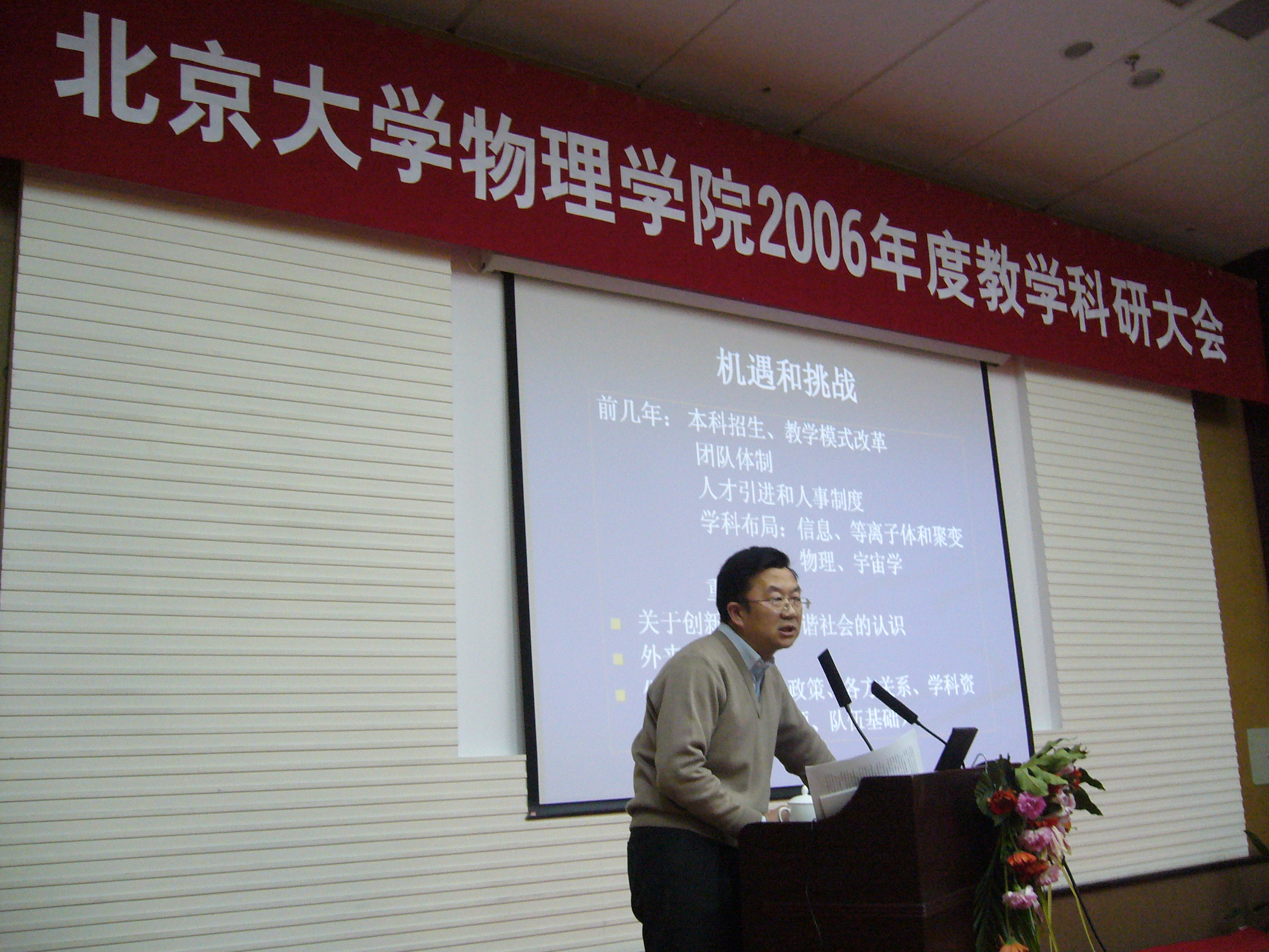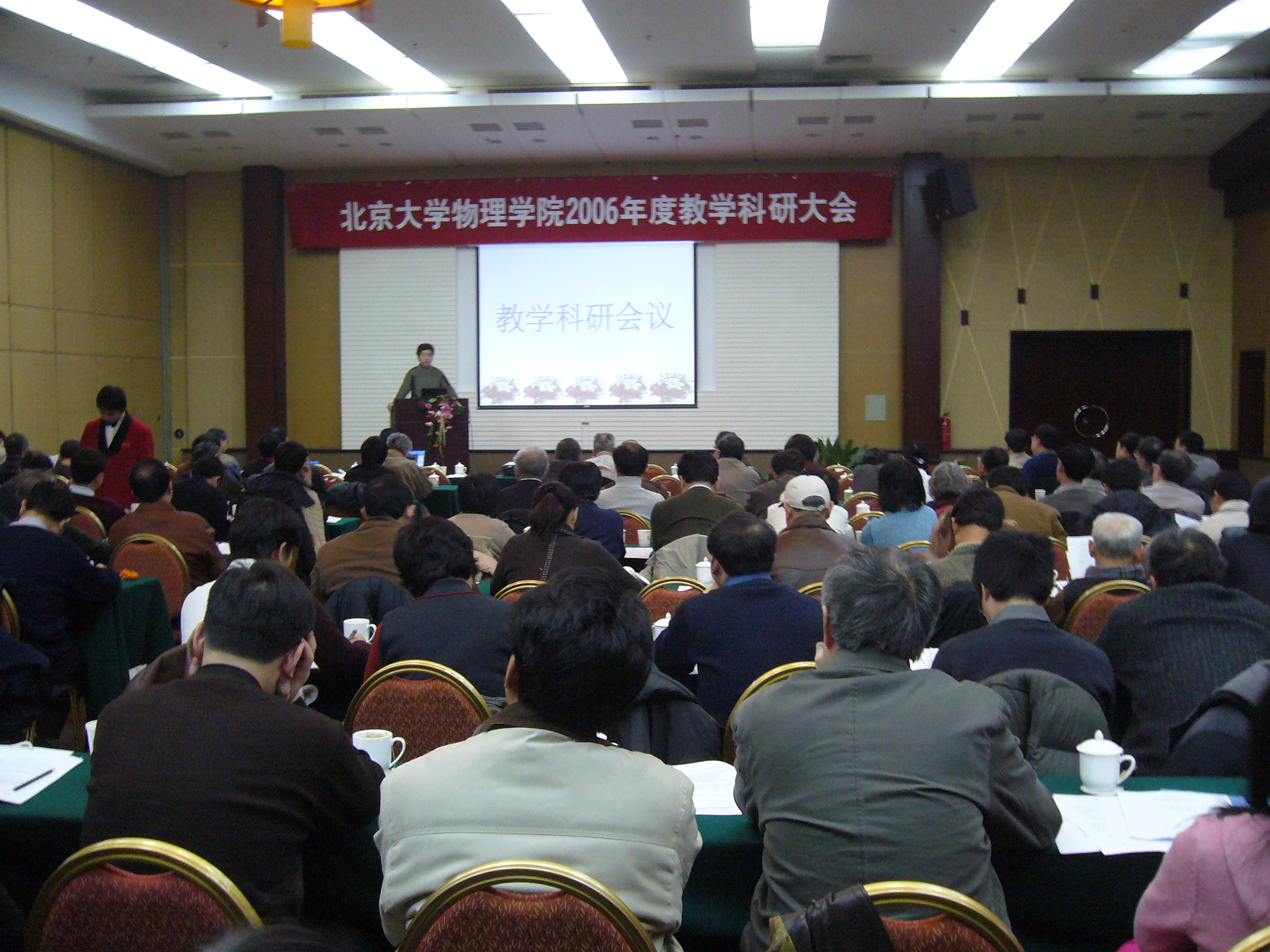 为研讨和推动教学科研工作,2007年1月15至16日,欧冠官方网站2006年度教学科研大会在北京九华山庄隆重举行。欧冠官方网站近200位教师聚集一堂,共商北大物理学科人才培养和学科发展大计。
