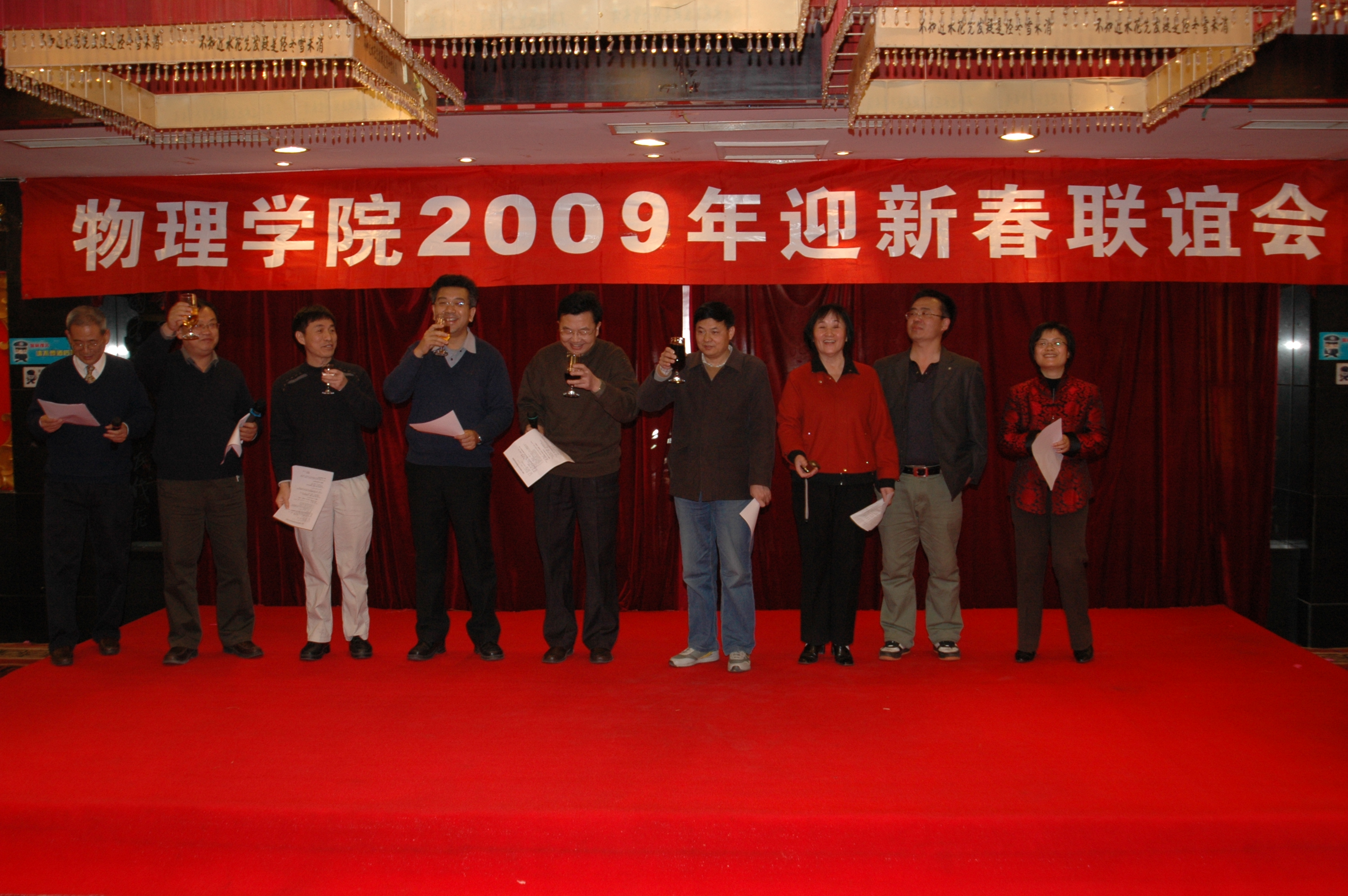 2009年1月14日中午,欧冠官方网站教职工新春联谊会在新开元大酒店举行,有约210多位教职员工参加了此次新春联谊会。院党委副书记谭本馗老师宣布大会开始,院长叶沿林老师和书记陈晓林老师在联谊会上致词,向全院教职工致以新春的问候并感谢各位老师在过去的一年里为学院的发展所做出的贡献。院领导班子集体给全院教职员工敬酒,祝愿大家在新的一年里工作顺利、身体健康。