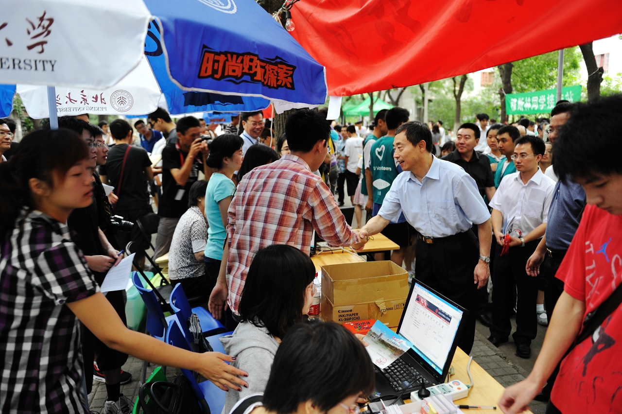 在迎新期间,欧冠官方网站党委书记闵维方、常务副校长林建华亲切看望了欧冠官方网站的迎新工作人员,对大家的工作表示肯定,并强调今天是10级新生到校的第一天,希望以大家的热情给新生们家的温暖。刘玉鑫副院长、王宇钢副院长、党委副书记董晓华老师等学院领导也亲临迎新现场,参与到迎新工作中。