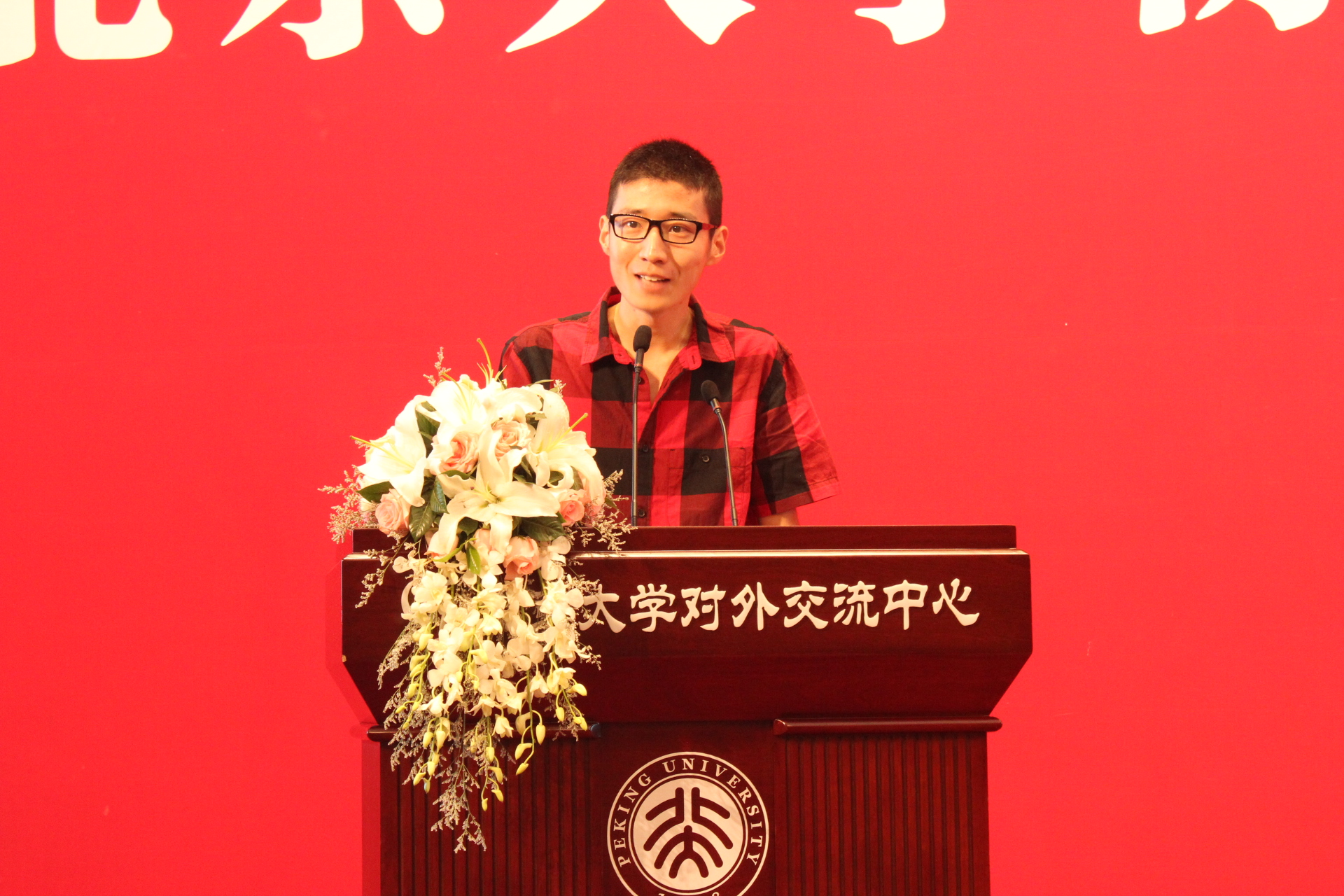 此后,2015级本科生党郅博、2013级本科生张正兴、2015级博士生弓正、2012级博士生张贺分别上台发言。新生代表讲述了自己来北大求学的心路历程,表达了对校园生活的美好憧憬,并庄严承诺以实际行动做出无愧于母校、无愧于青春的成绩。老生代表则以他们自己的切身体会提醒学弟学妹们要以顽强的钻研、拼搏精神挑战自我,战胜困难。作为学业的佼佼者,他们分别在本科学习生活和科研方面给出了自己宝贵的建议。
