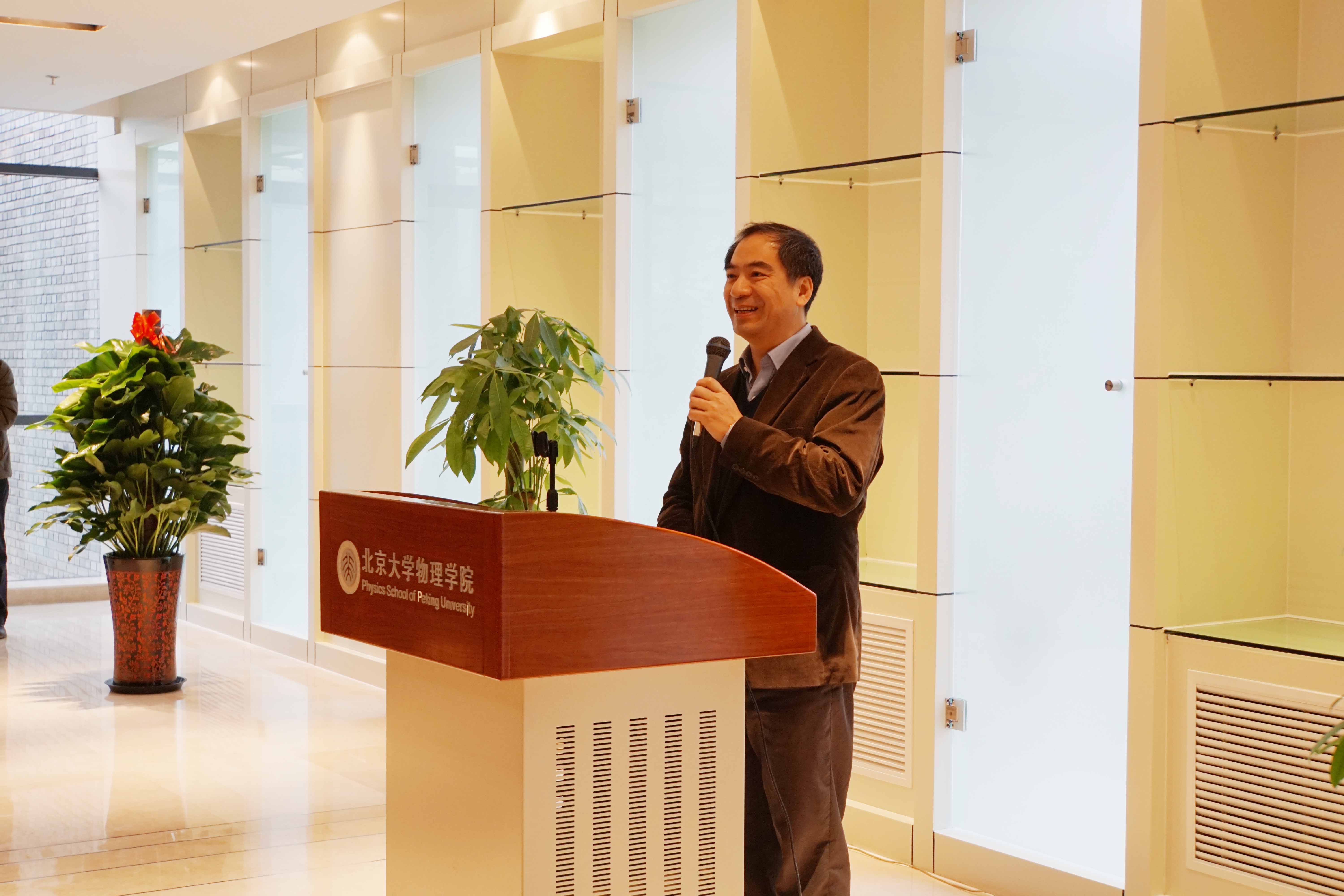 龚旗煌教授向大家介绍了物理西楼三个特殊意义的时间节点,他说,物理西楼于2012年6月10日正式开工,2013年7月9日主体结构封顶,2015年1月26日落成交付使用,这些重要的日子将永远载入北大物理的史册。最后,他代表欧冠官方网站向出席仪式的各位领导、朋友以及校内外各方对物理园区建设的关心和支持表示衷心感谢。