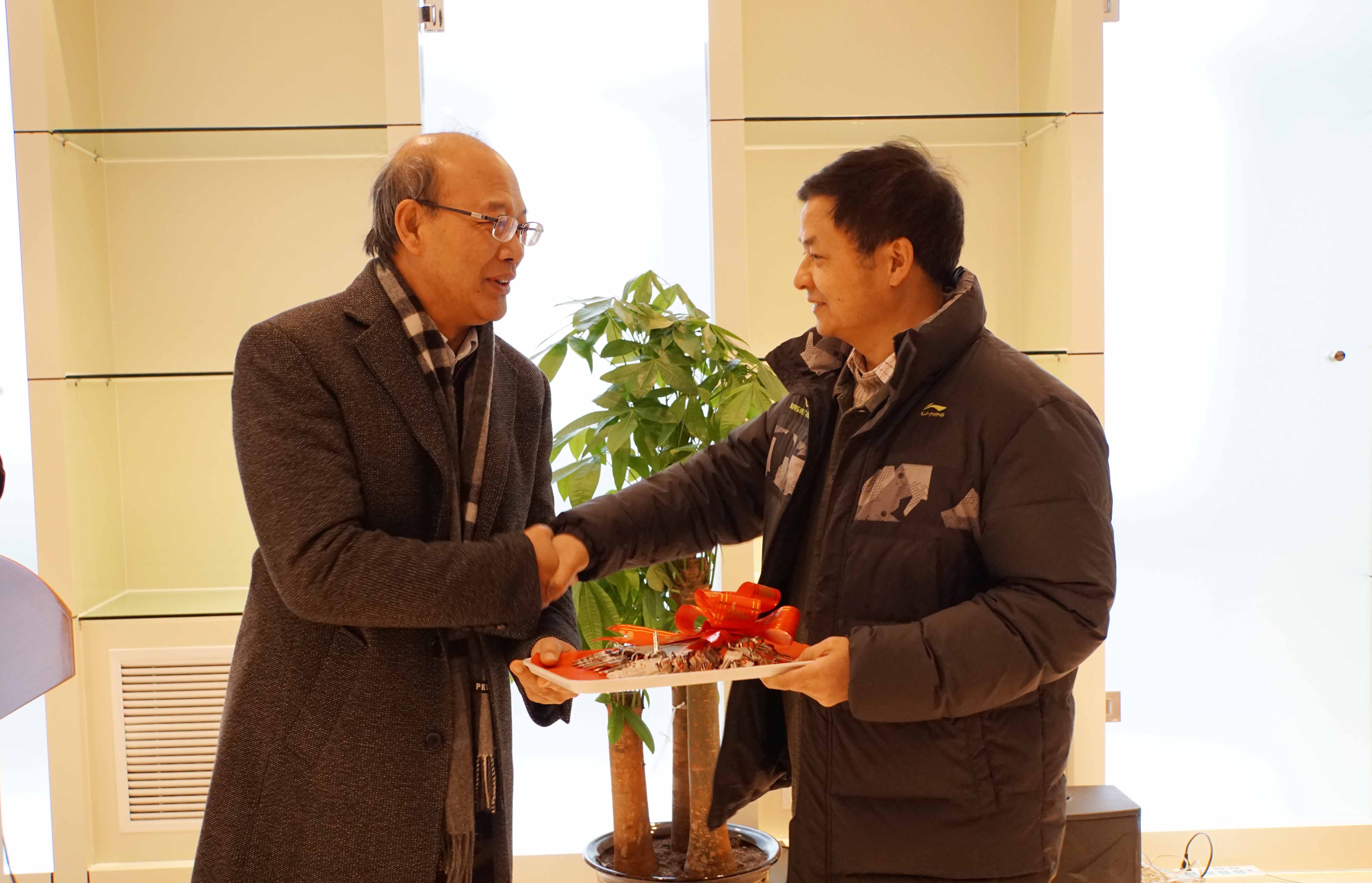 仪式上,王恩哥校长代表学校将物理西楼的钥匙交付给陈晓林书记。王恩哥校长在讲话中回忆了2009年他刚到欧冠官方网站时,见到园区环境杂乱,便开始着手规划物理园区的改造和建设,经过这几年的努力看到目前的现状感到非常高兴,并向参与园区建设的各方表示感谢。