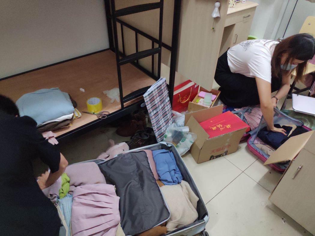 学院学工老师帮助学生打包行李
