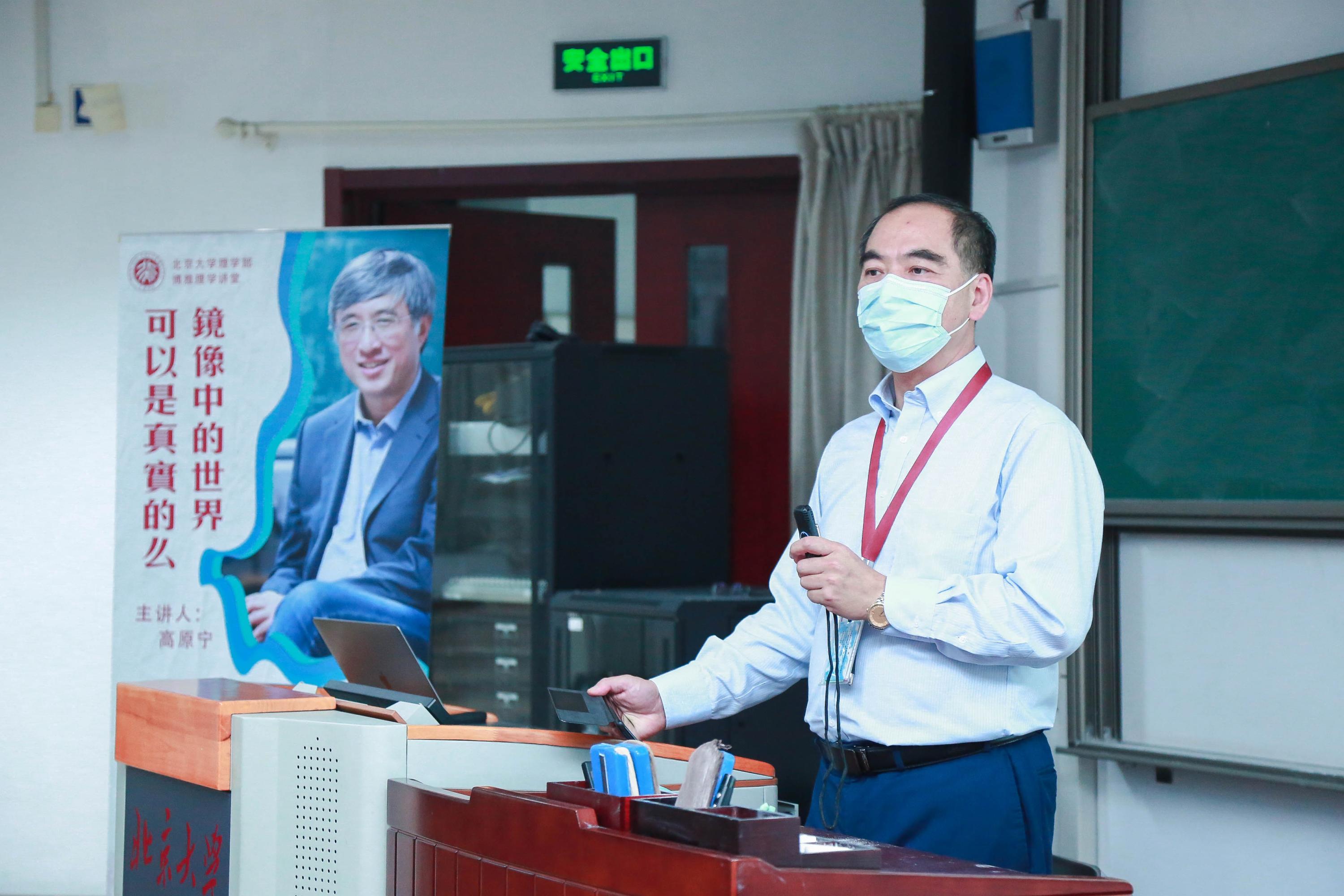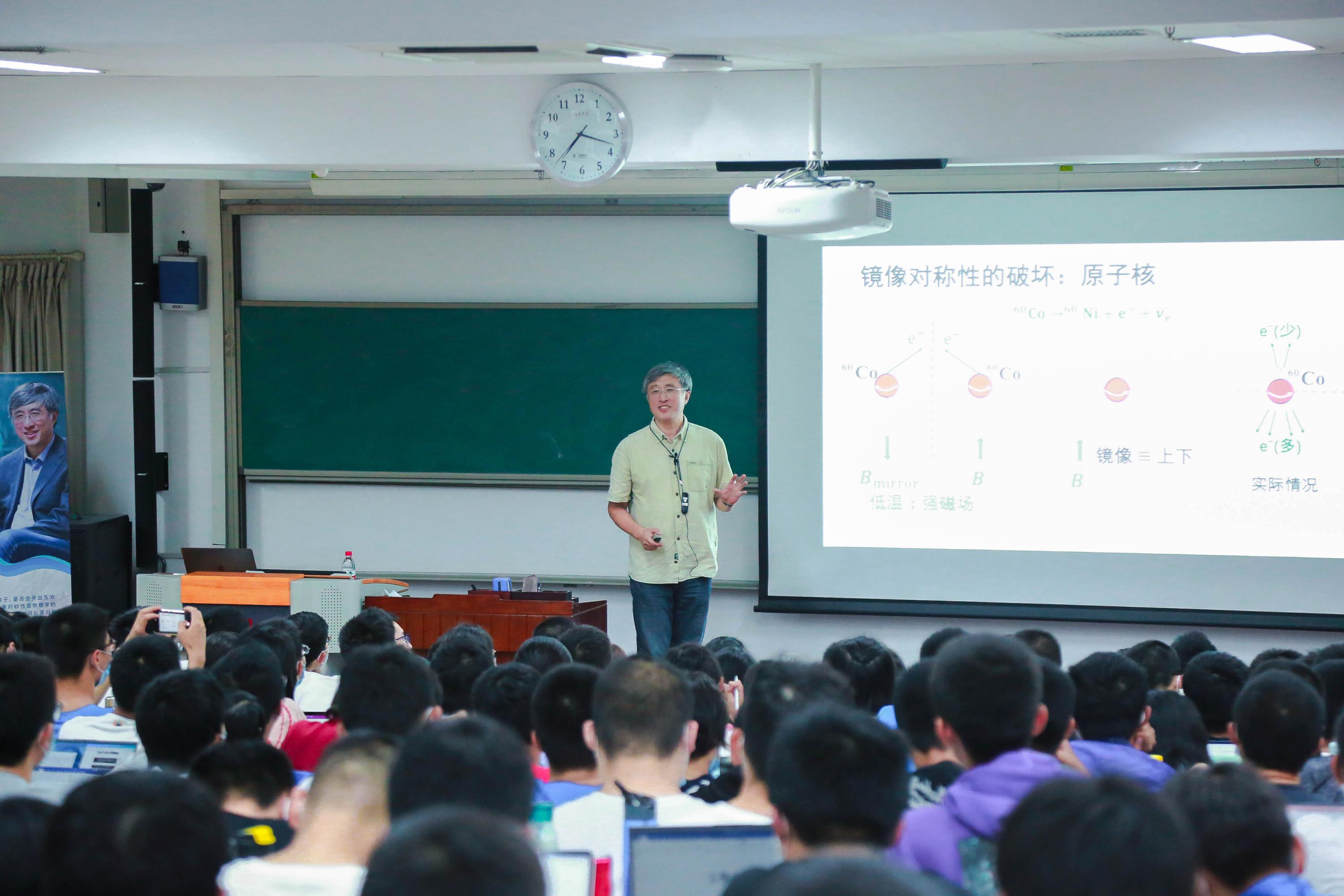 随后,欧冠官方网站院长、核物理与核技术国家重点实验室主任、中国科学院院士高原宁教授以“镜像中的世界可以是真实的吗?——分立对称性和CP破坏”为题,开启讲堂第一课。自然界是否存在镜像对称性是物理学的一个重要课题;与之类似,电荷共轭、时间反演对称性也分别在理解物质构成和宇宙演化中扮演着极其重要的角色。高原宁从如何定义“左”“右”和“正”“负”,引入粒子物理学中的“分立对称性”概念,并通过例举D介子、底夸克、K介子和欧洲核子研究中心大型强子对撞机上底夸克探测器(LHCb)等相关实验,娓娓讲述了CP破坏,引导同学们探寻宇宙中正反物质不对称现象的起因。他说,基于基础研究的重大突破可能产生颠覆性、前沿性技术,后者反过来又可以催生新思想、新理论、新方法和新的科学手段;技术创新、应用转化及其基础支撑从来都是推动人类科学技术进步相辅相成的重要动力。