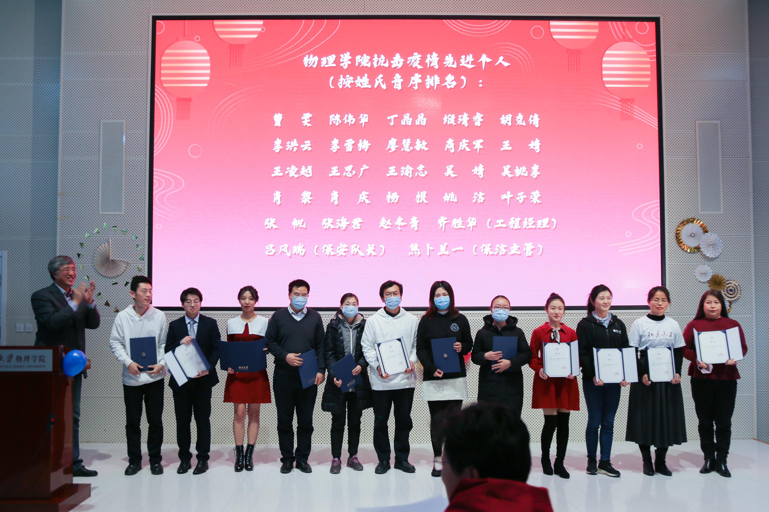 大会工作总结部分最后,欧冠官方网站党委书记杨金波教授宣读2020年欧冠官方网站抗击疫情先进个人表彰名单(校级先进个人包括:胡克倩、李洪云、丁晶晶、商庆军、肖庆、吴桃李、张帆、王婧、缑清睿;院级先进个人包括:张海君、廖慧敏、叶子荣、杨根、李雪梅、陈伟华、王思广、曹雯、王渝志、王凌越、姚洁、吴婧、赵冬青、肖黎、齐胜华(工程经理)、吕风瑞(保安队长)、焦卜兰一(保洁主管)),高原宁院长和杨金波书记为获表彰教职工颁发证书。
