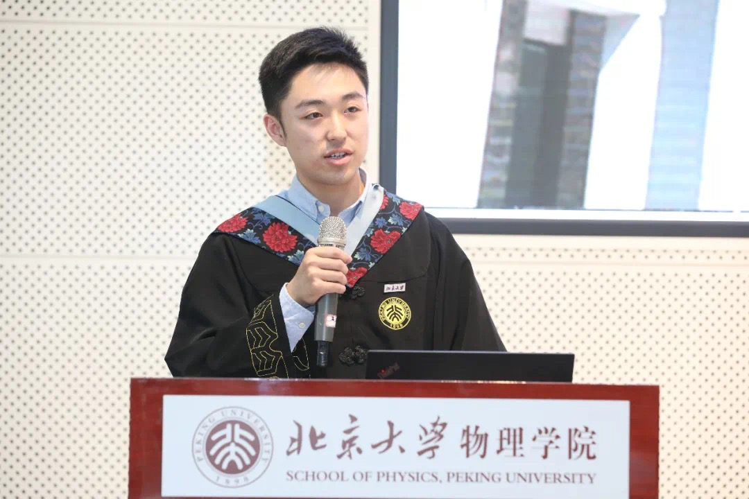 毕业生代表、2016级本科毕业生李嘉轩从疫情下的毕业感受出发,对努力抗击疫情、为学生付出心血的学院教工表示感谢。他表示在北大学会了尊重和包容每一个个体,肯定和赞美每一份努力,强调坚持独立思考、科学精神,珍惜现有幸福生活,在关键时刻为国家的需要和人类的利益挺身而出。